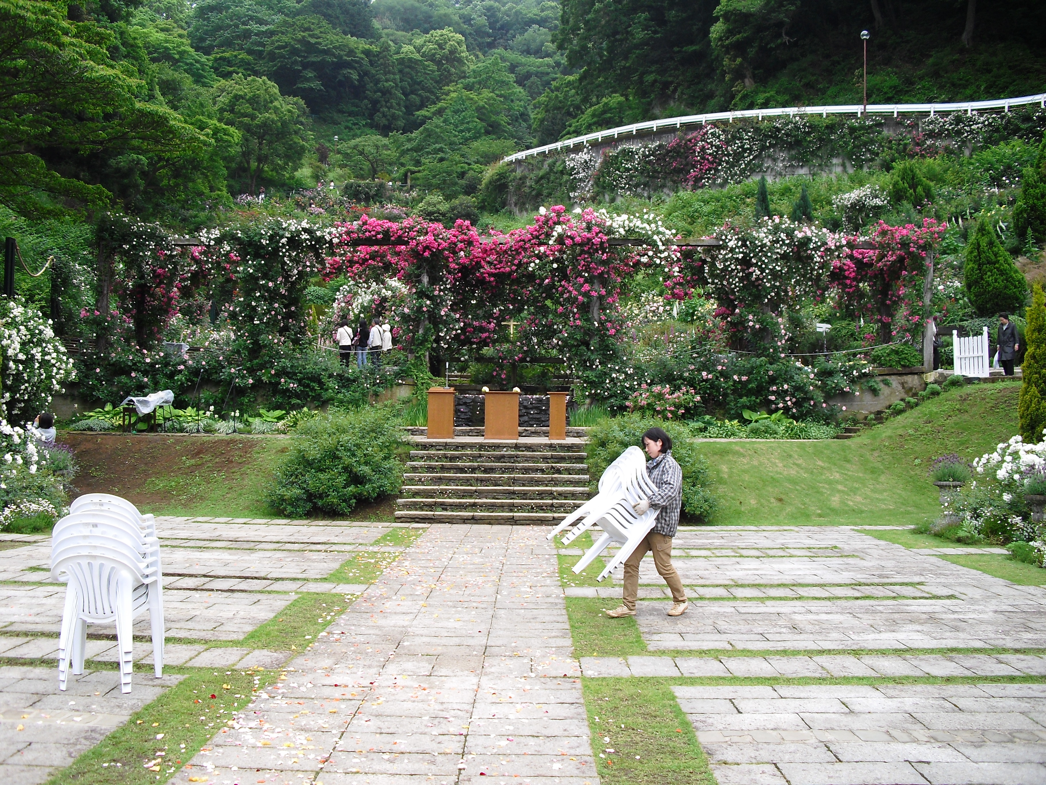 バラを見ながら下りてきた時はもう終わって片付けていました。