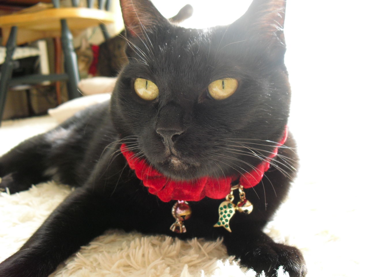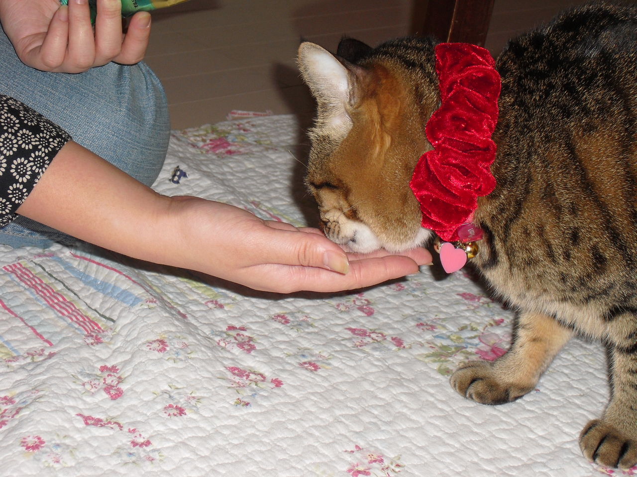 赤い首輪は娘のお土産です。