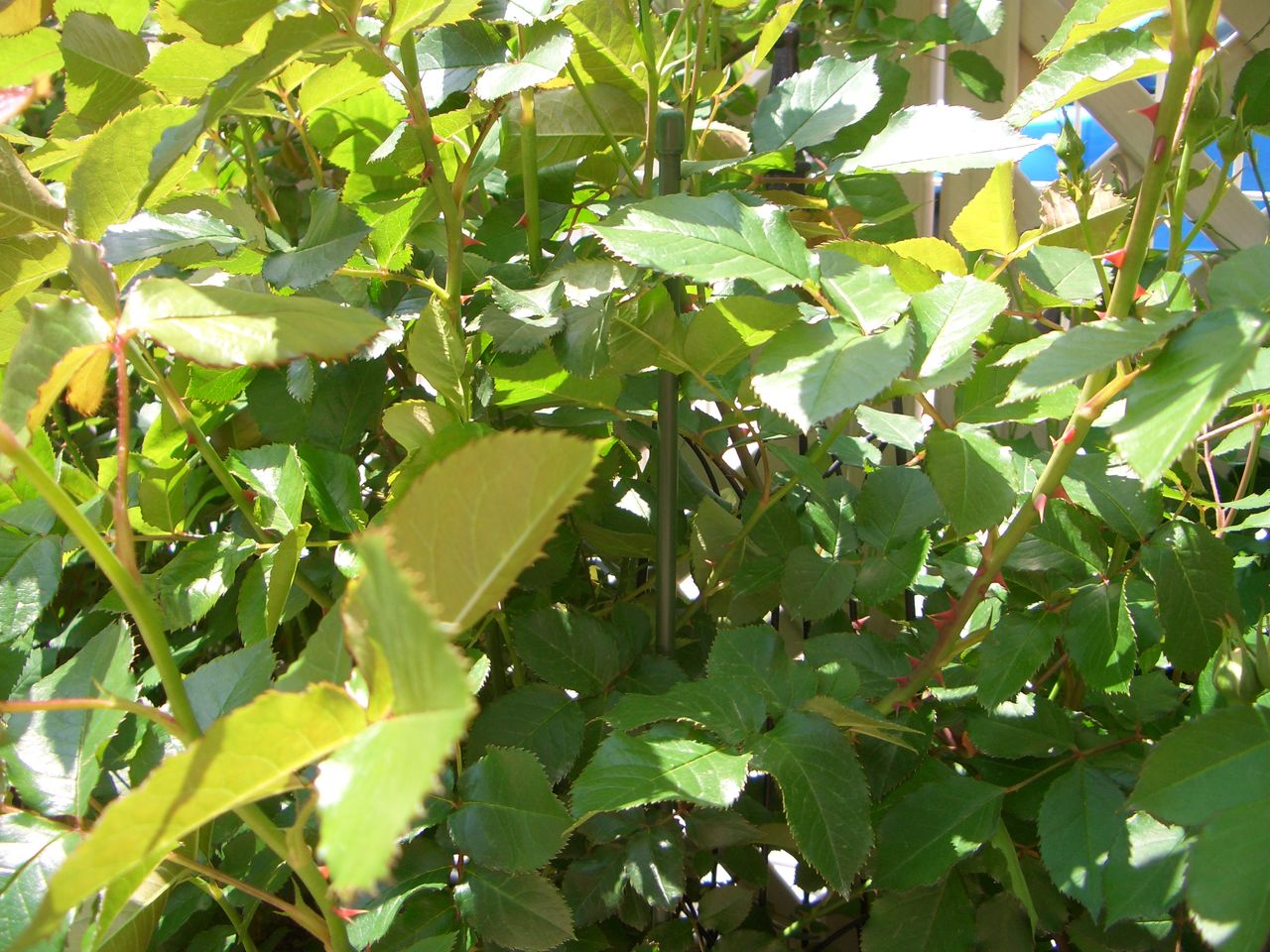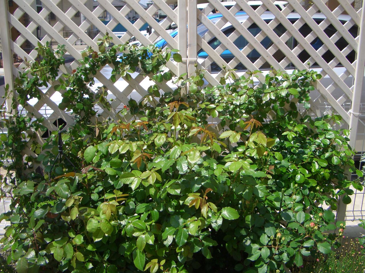 バラがあんまりにも元気で葉っぱがぎゅうぎゅうです。