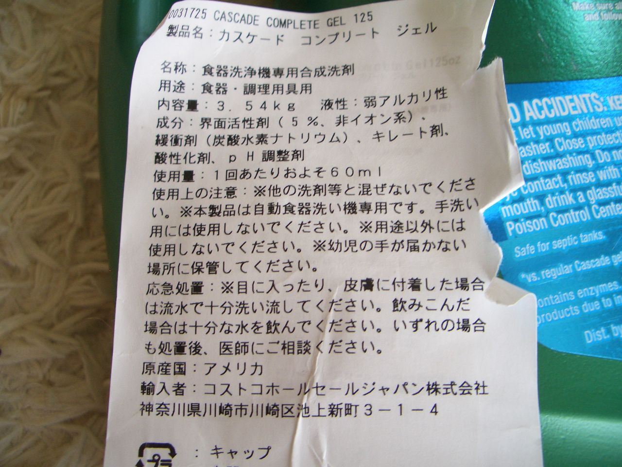 コストコで購入した「カスケードコンプリートジェル」です。