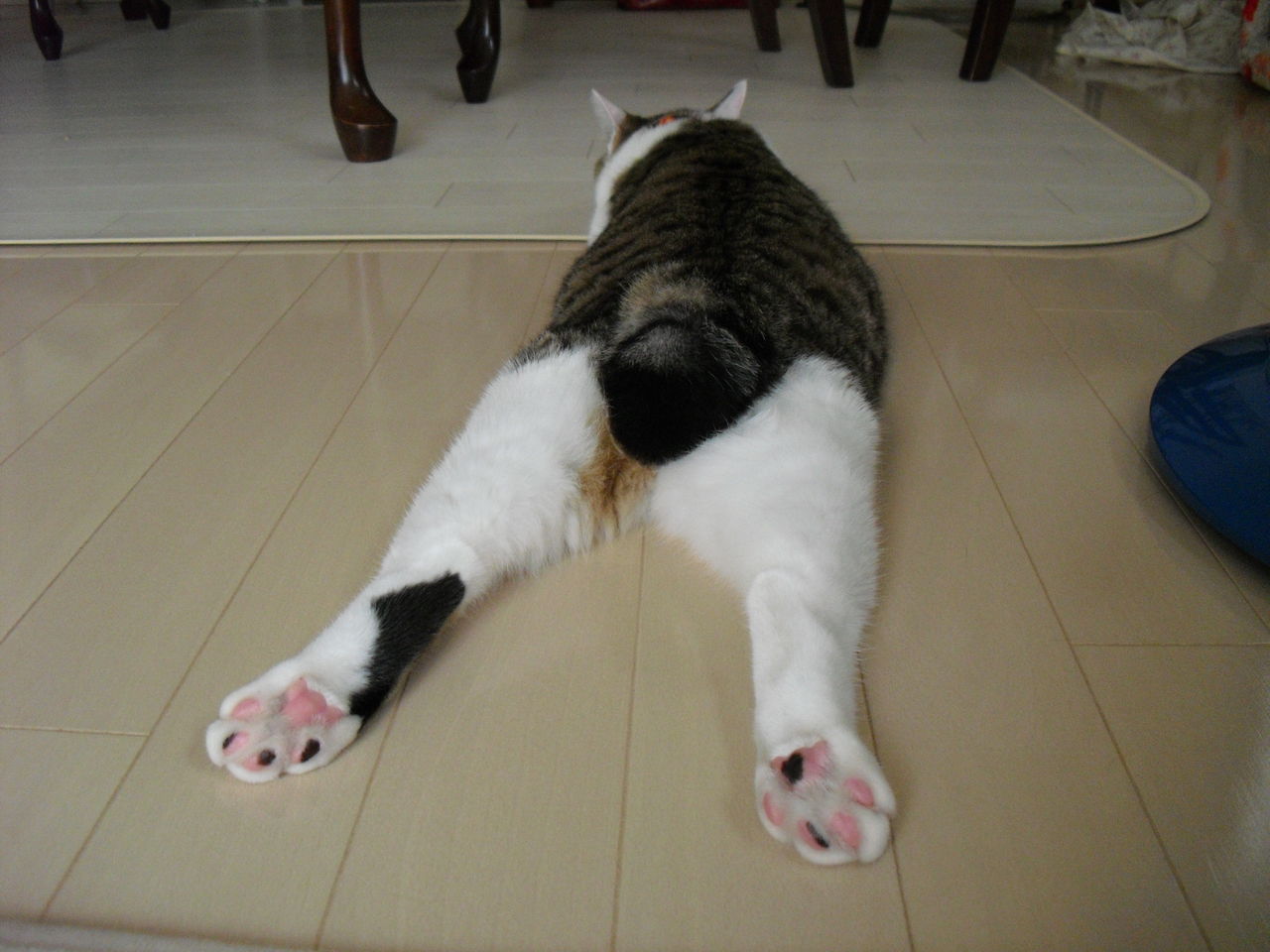 これはお外の猫さんだったらあり得ない格好ですね。