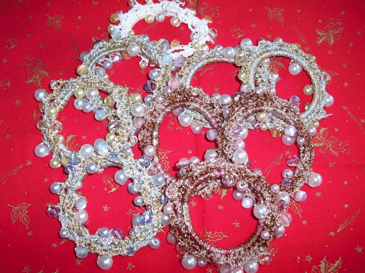 キラキラのビーズシュシュ、昨夜編んで6個追加しました。