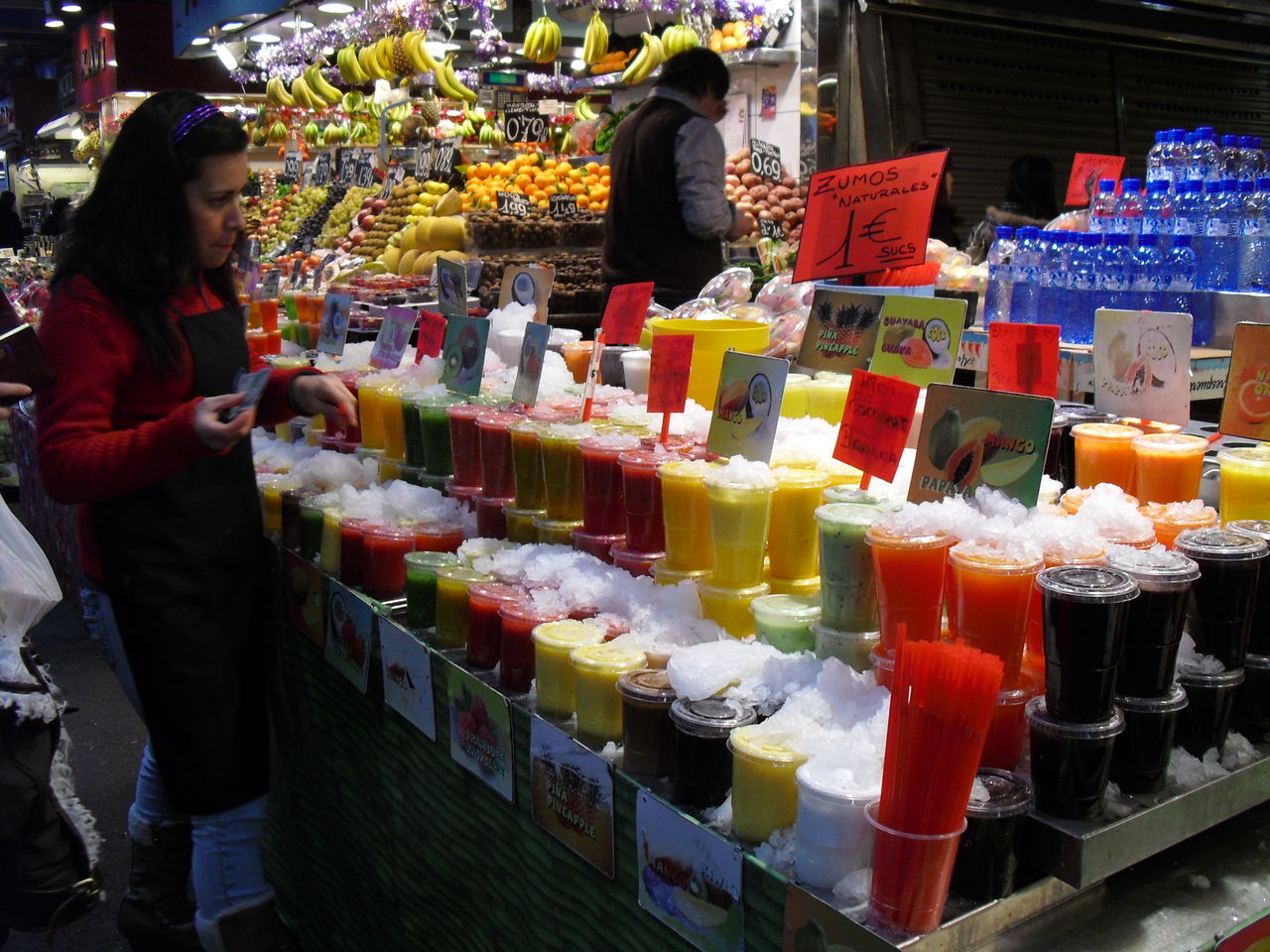 果物屋さんはフレッシュジュースを売っていますよ。