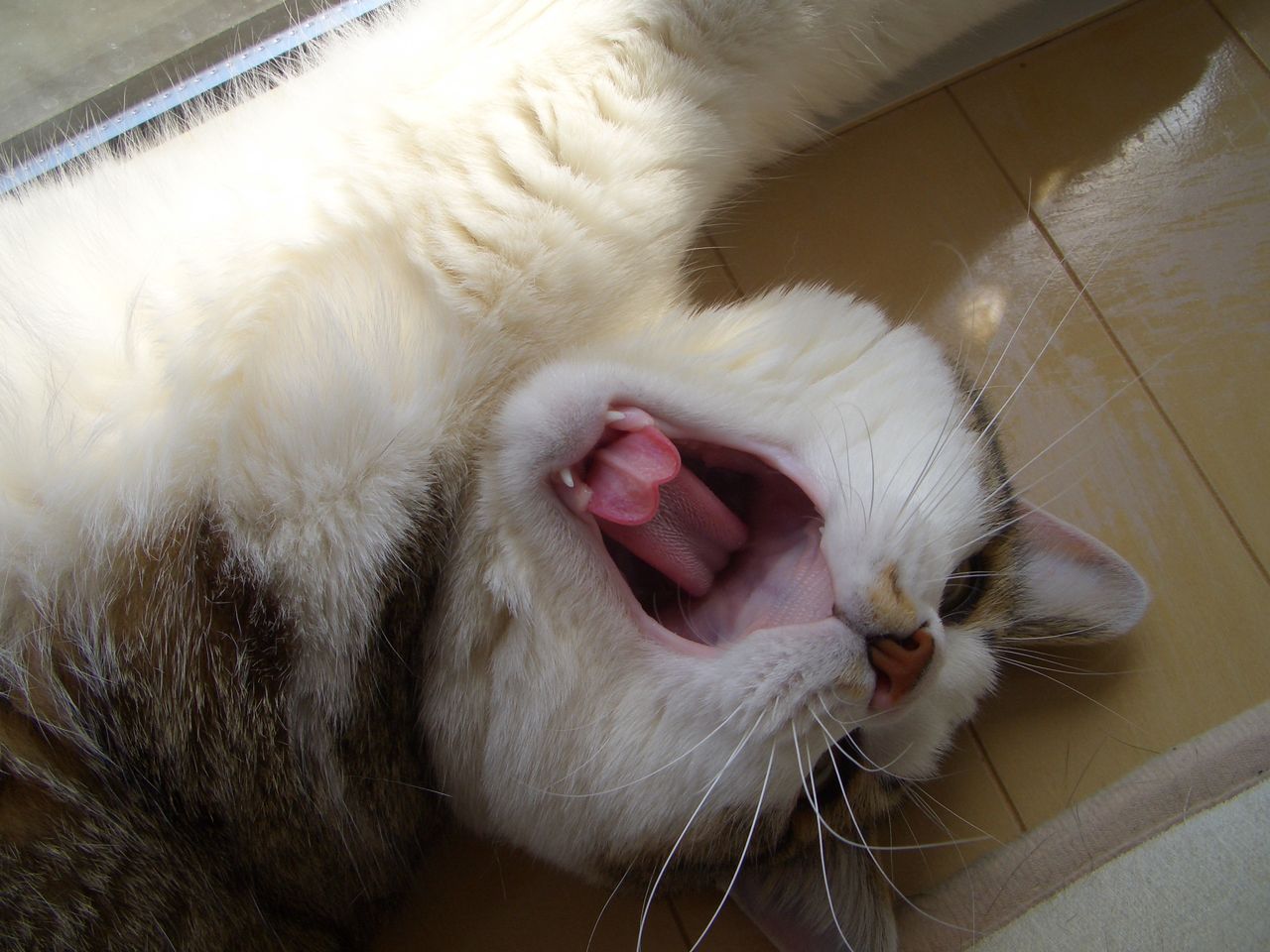 時々射す陽ざしの中で大きなあくび、平和なカメちゃんです。