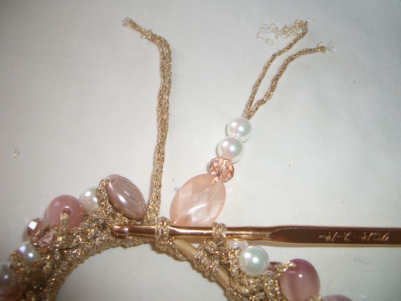 あと20cmで、細編みを全部で4目とビーズを4個編み込まなくてはなりません。