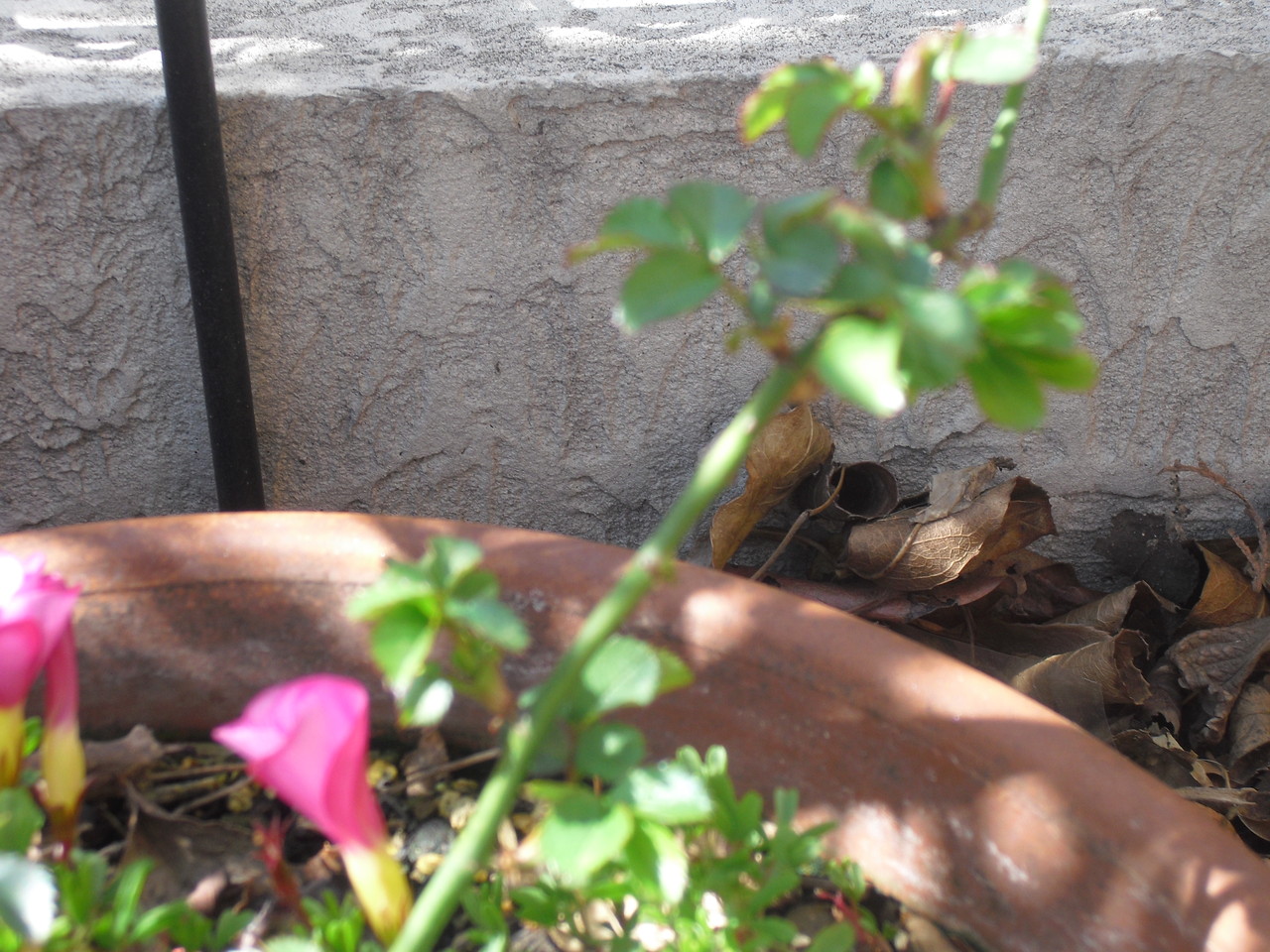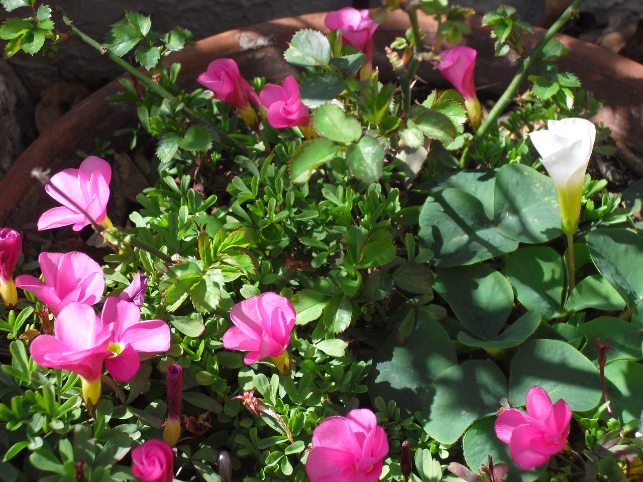 去年まではバラの小枝だけだったのにいつの間にかオキザリスが飛んでる・・