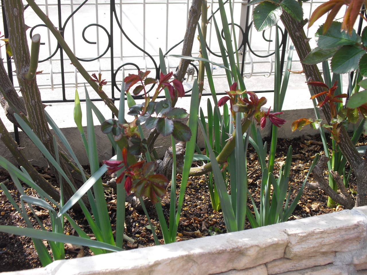 バラ花壇のコガネムシ対策に植えた水仙、こんなに大きくなって来ました。