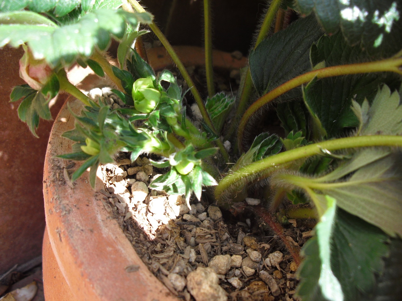 でもストロベリーポット、初めてなので土をいれ過ぎちゃったんですよ。すっかり土の中~