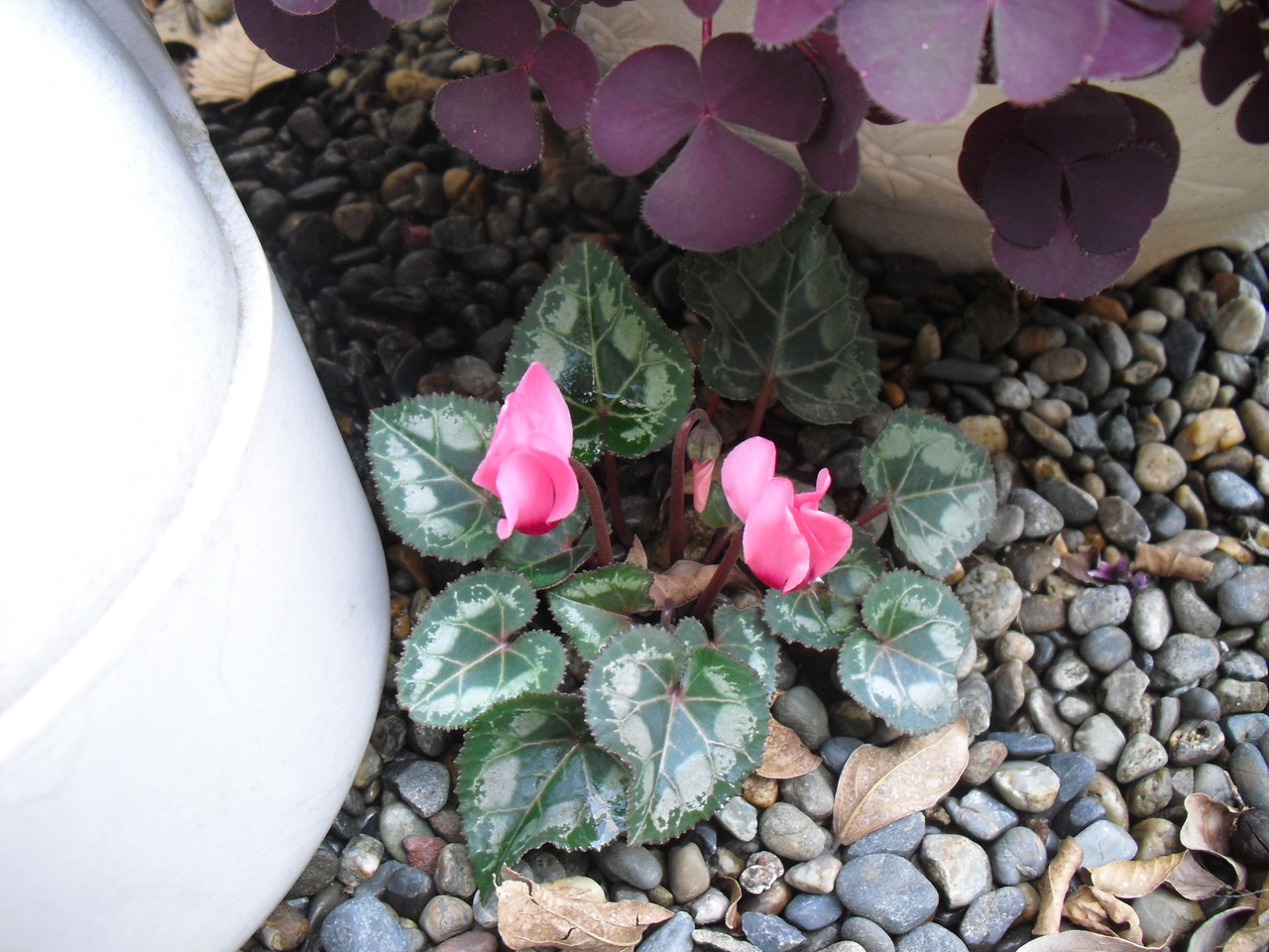 反対側に行って、植えっ放しのシクラメン。