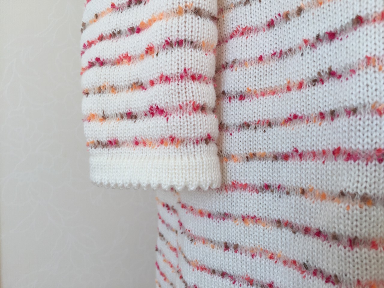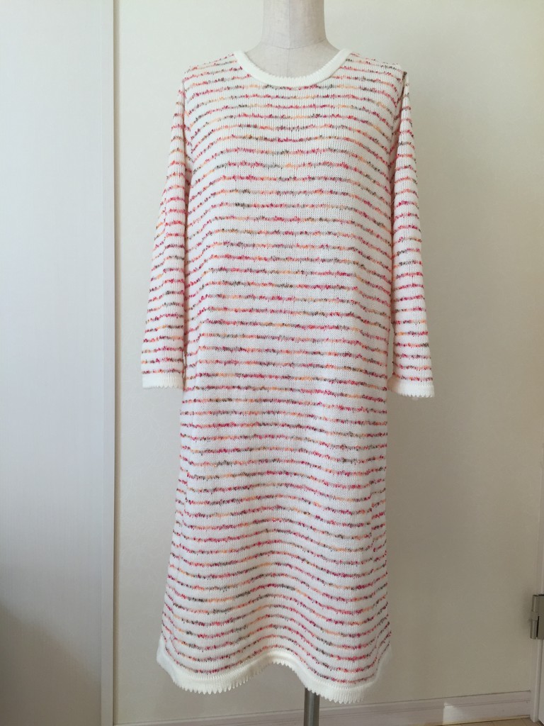 配色の白は前に作った白のボーダーワンピの残り糸なので、