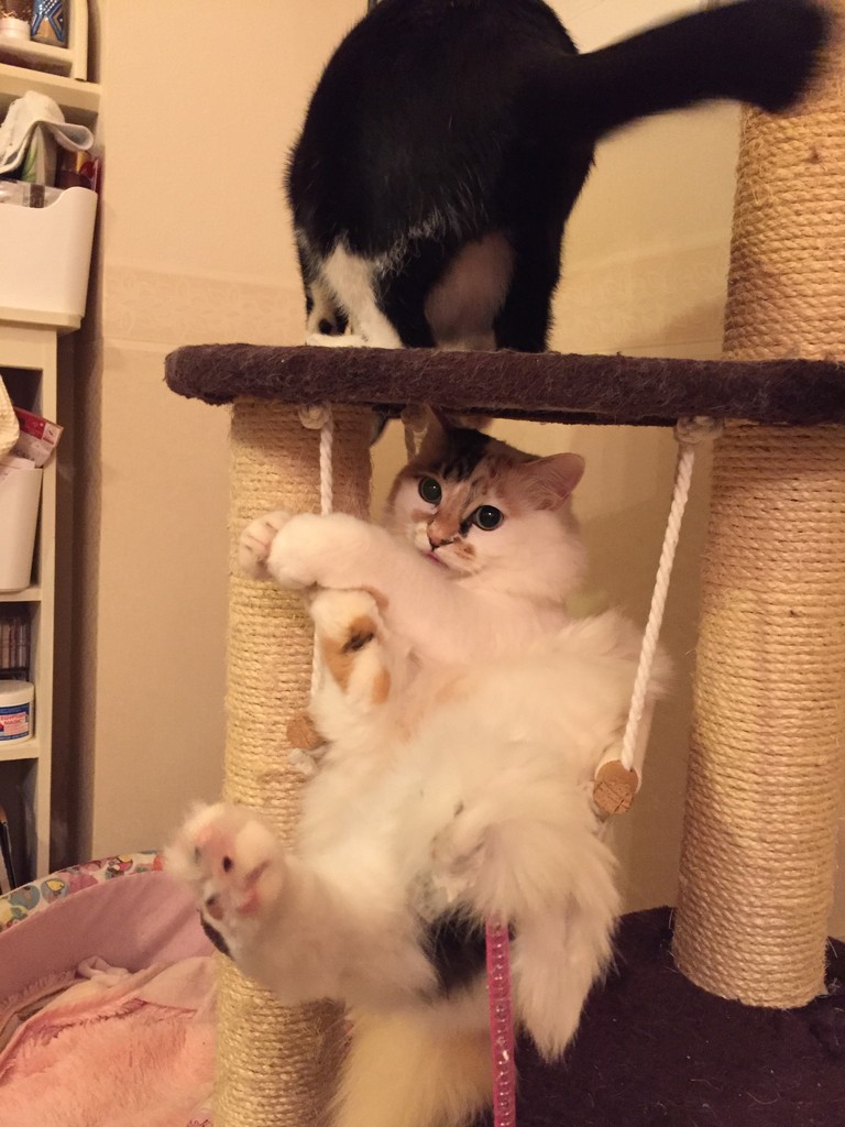 グレーの方はモヘアだけど白い方はすべすべの毛糸です。