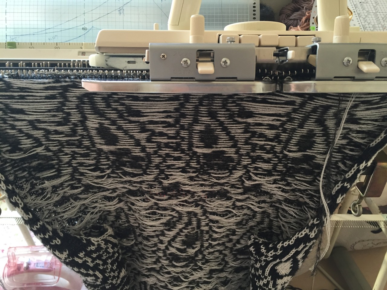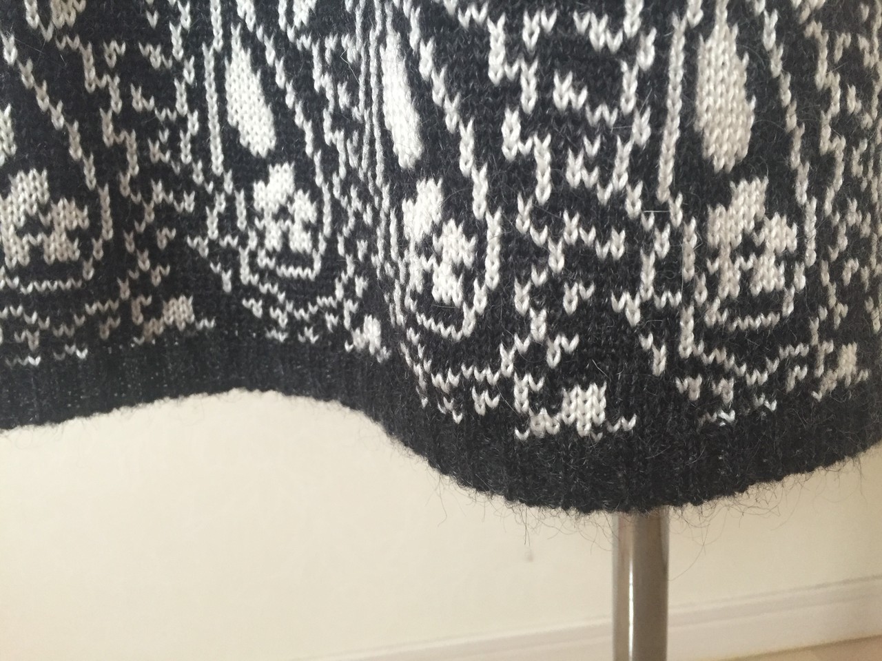 裾はね、前回はメリヤス編みにして裏にまつったんだけど、