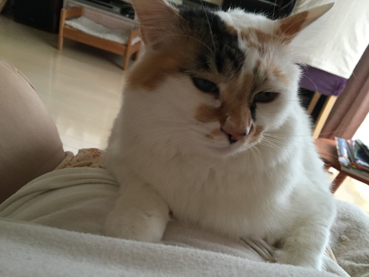 私の膝の上は好きなカメ子。