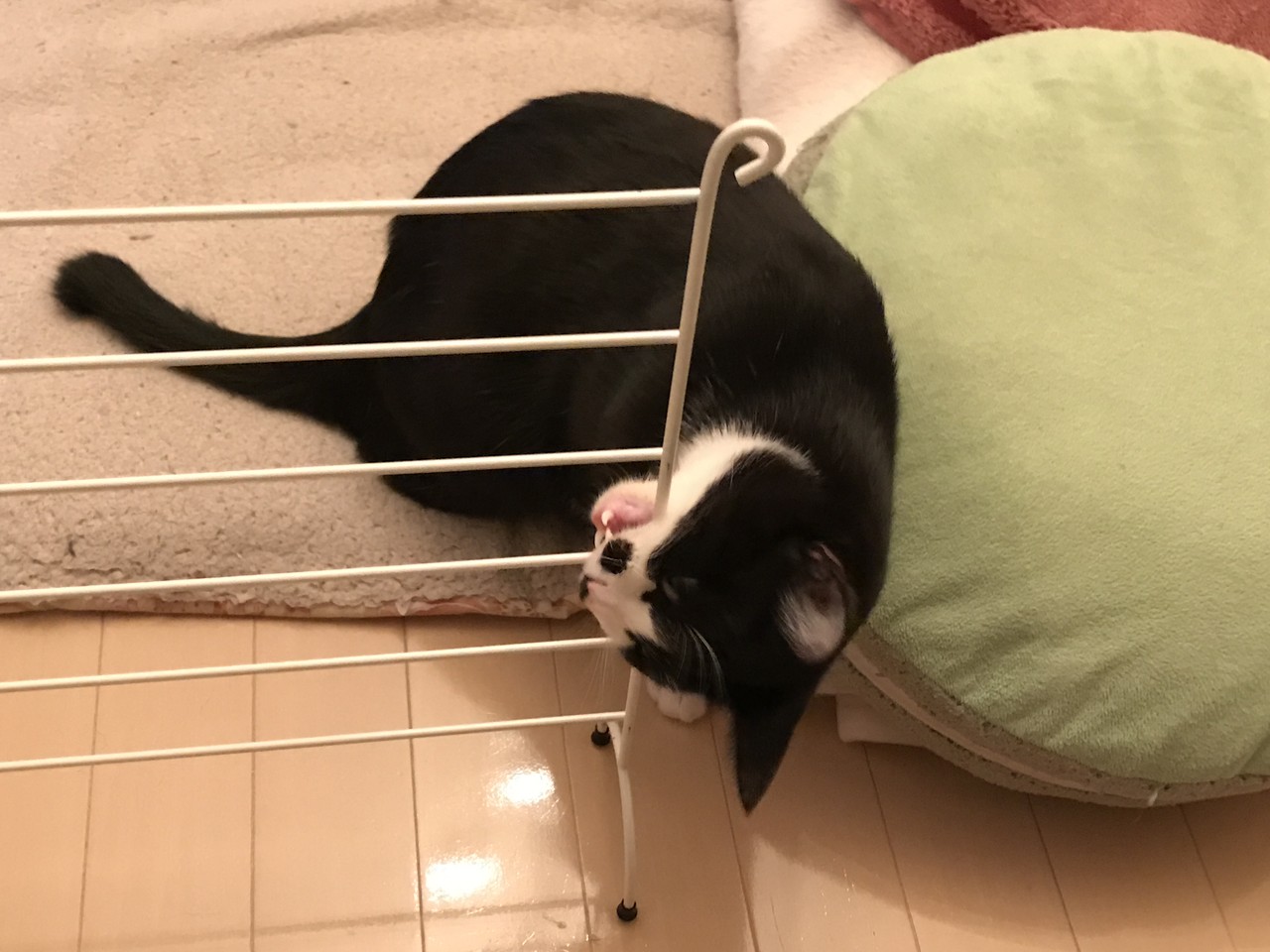 フワフワ枕を一生懸命フミフミしてます。