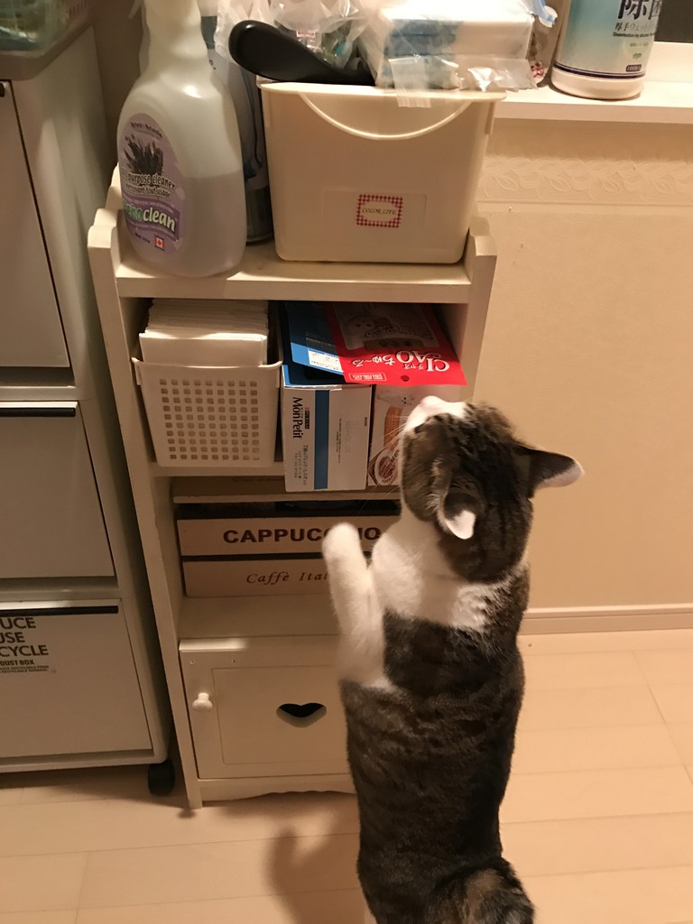 カメちゃんのモンプチ催促の図。
