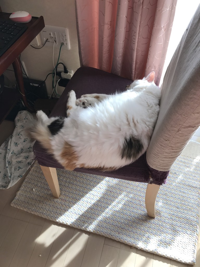 パソコンの椅子でお昼寝する姫ちゃん。
