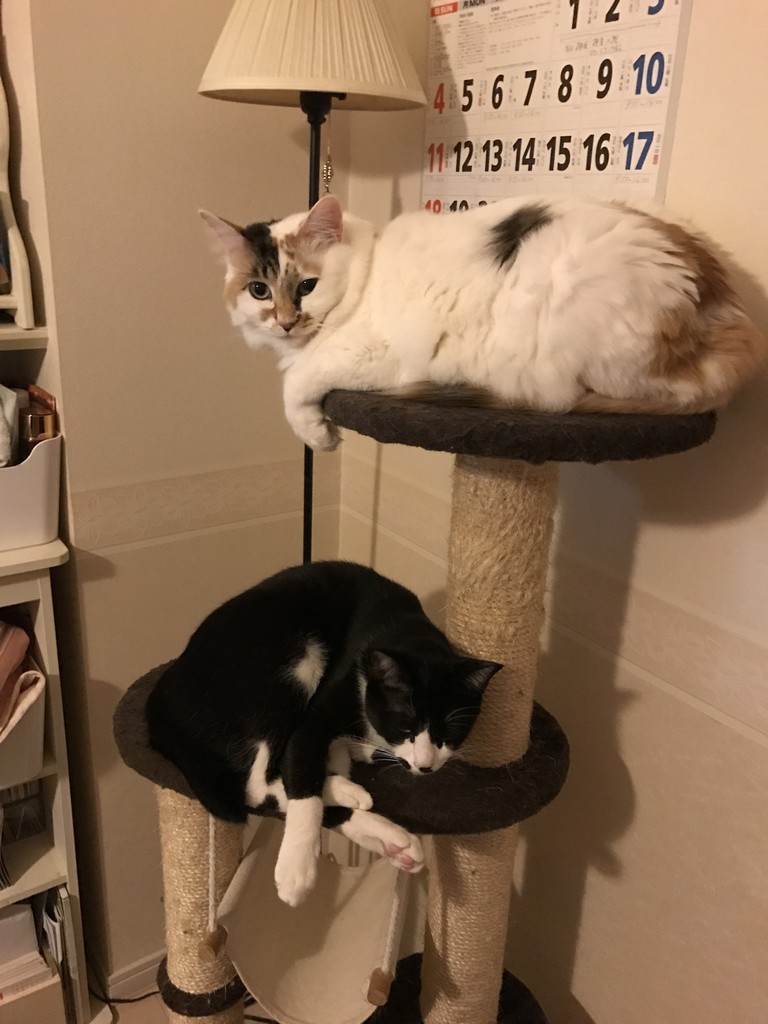 キャットタワーが大好きなお二方。