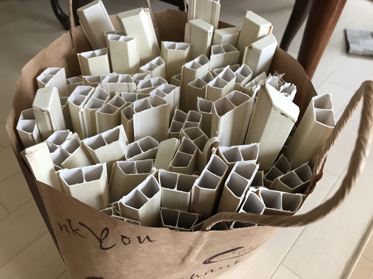 とりあえず息子を助っ人に呼んで枝を押さえてもらい縛りつけました。
