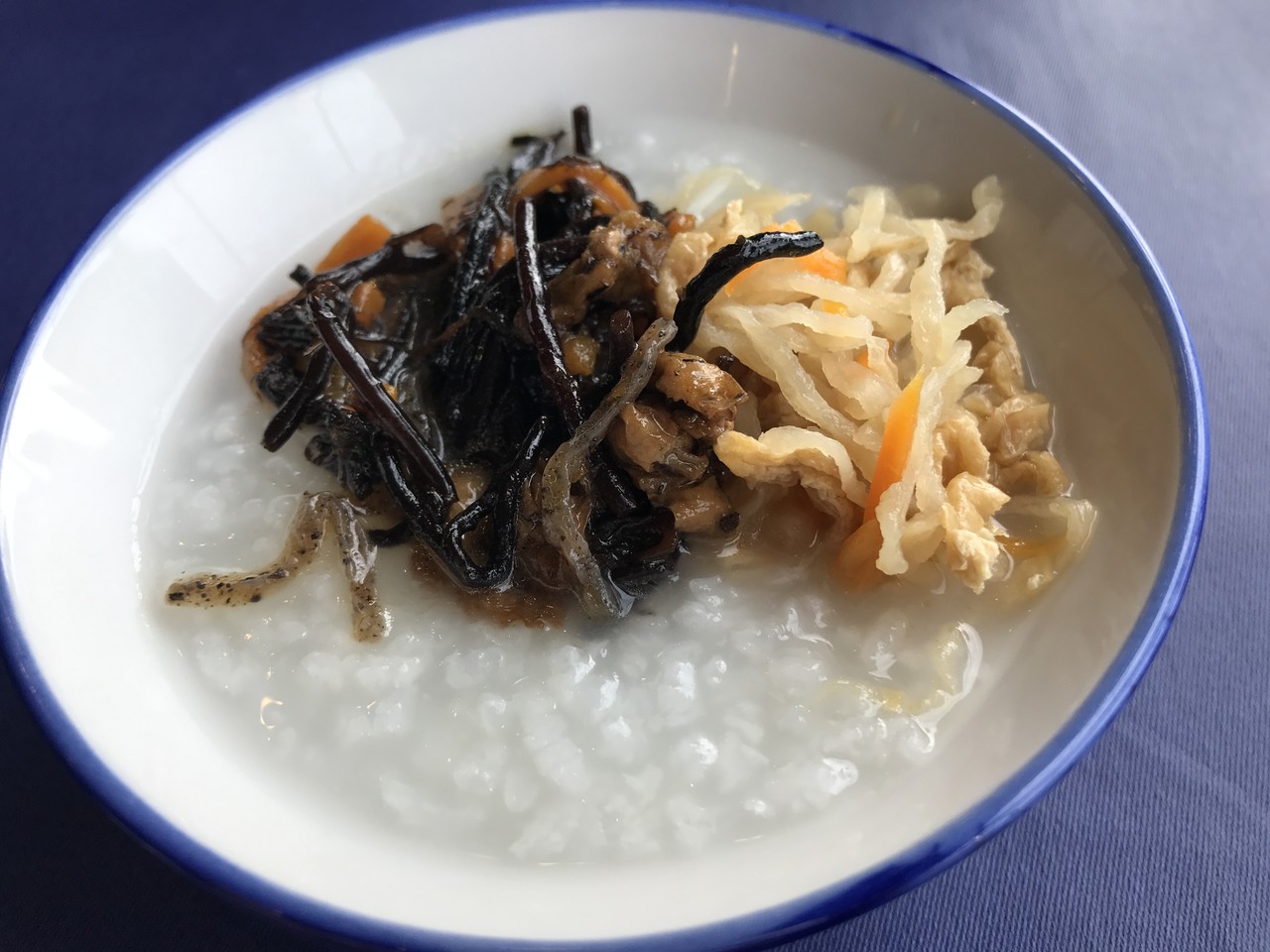 朝はお粥良いですね、こんなに食べても胃がもたれないです。