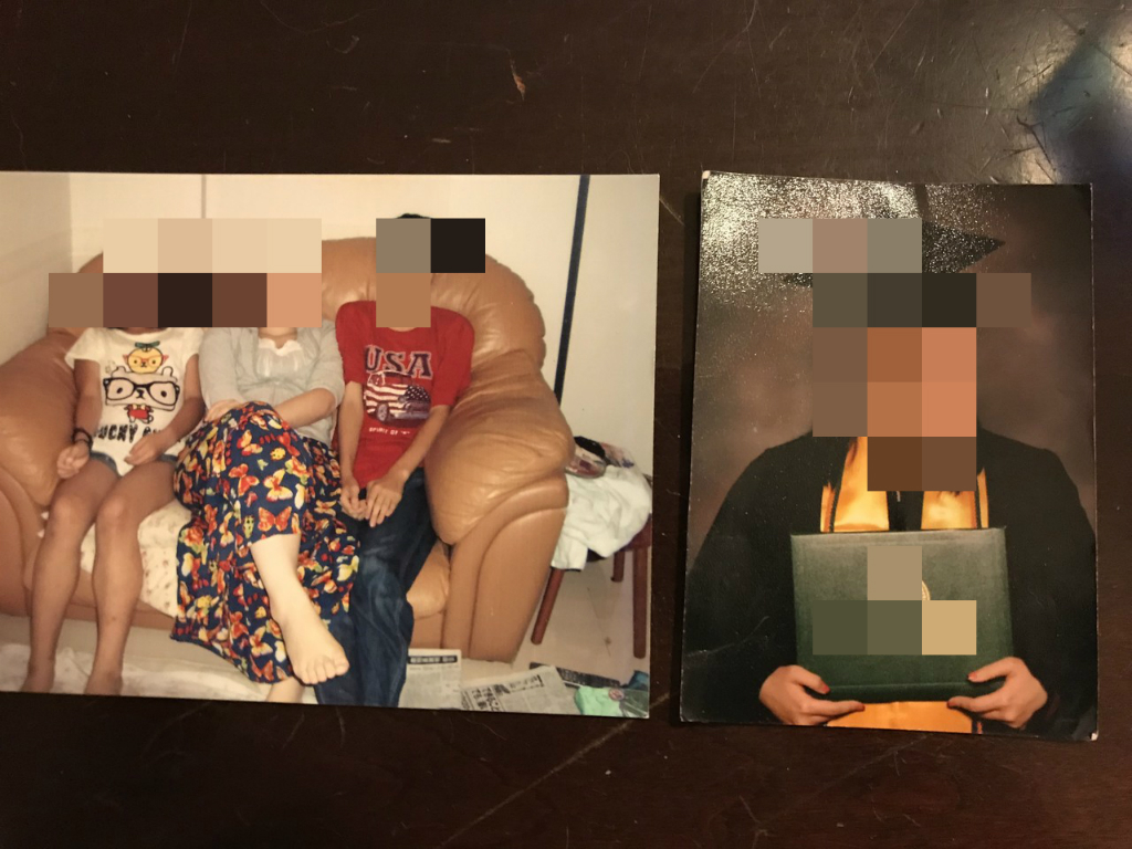 母がずっとベッドの上で見ていた三人の孫の写真と、