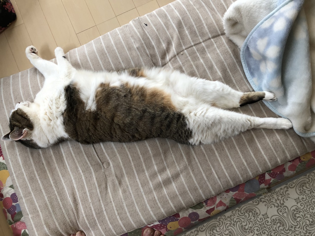 肌寒いのでファンヒーターを点けたら一等地でご覧の通り。