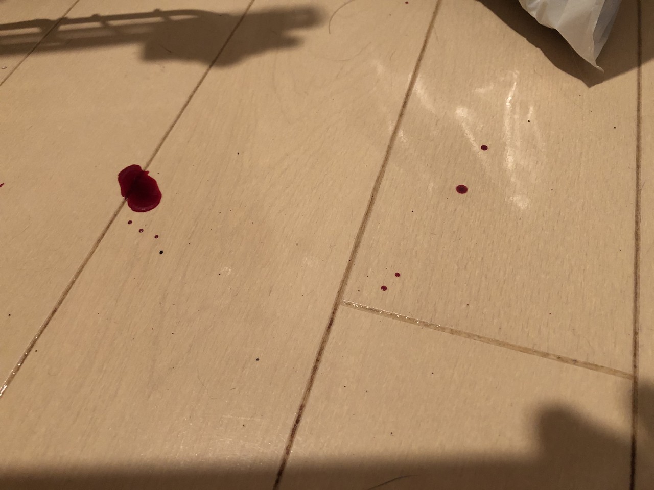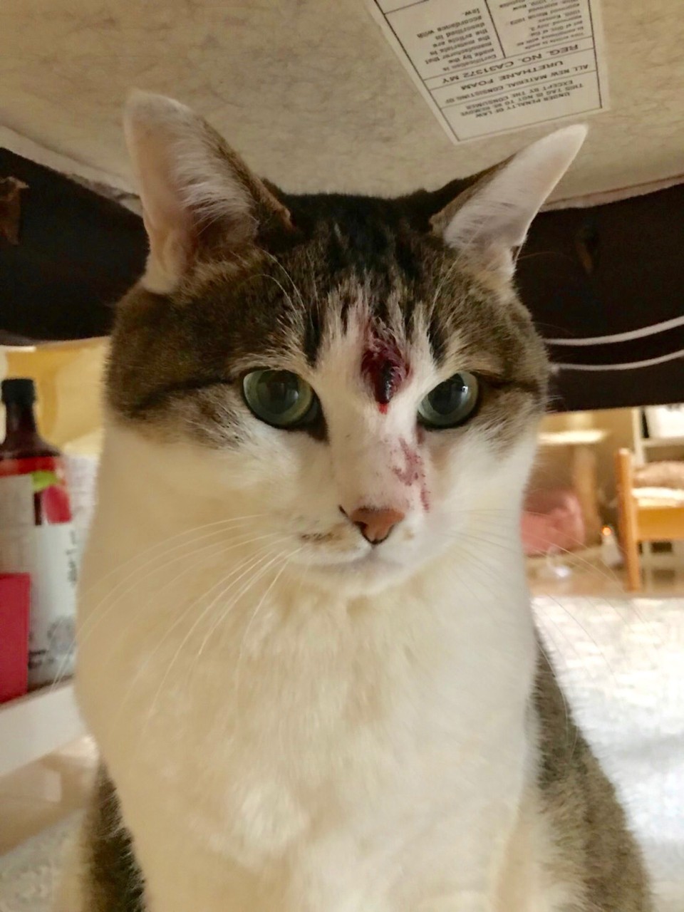 )のようにおでこから流血です。