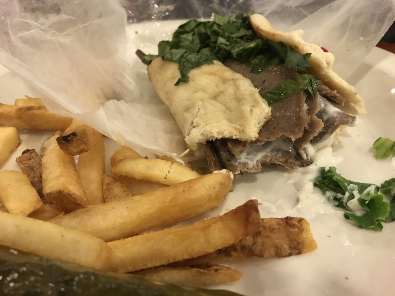 ナンみたいなパンにビーフを挟んだ物。