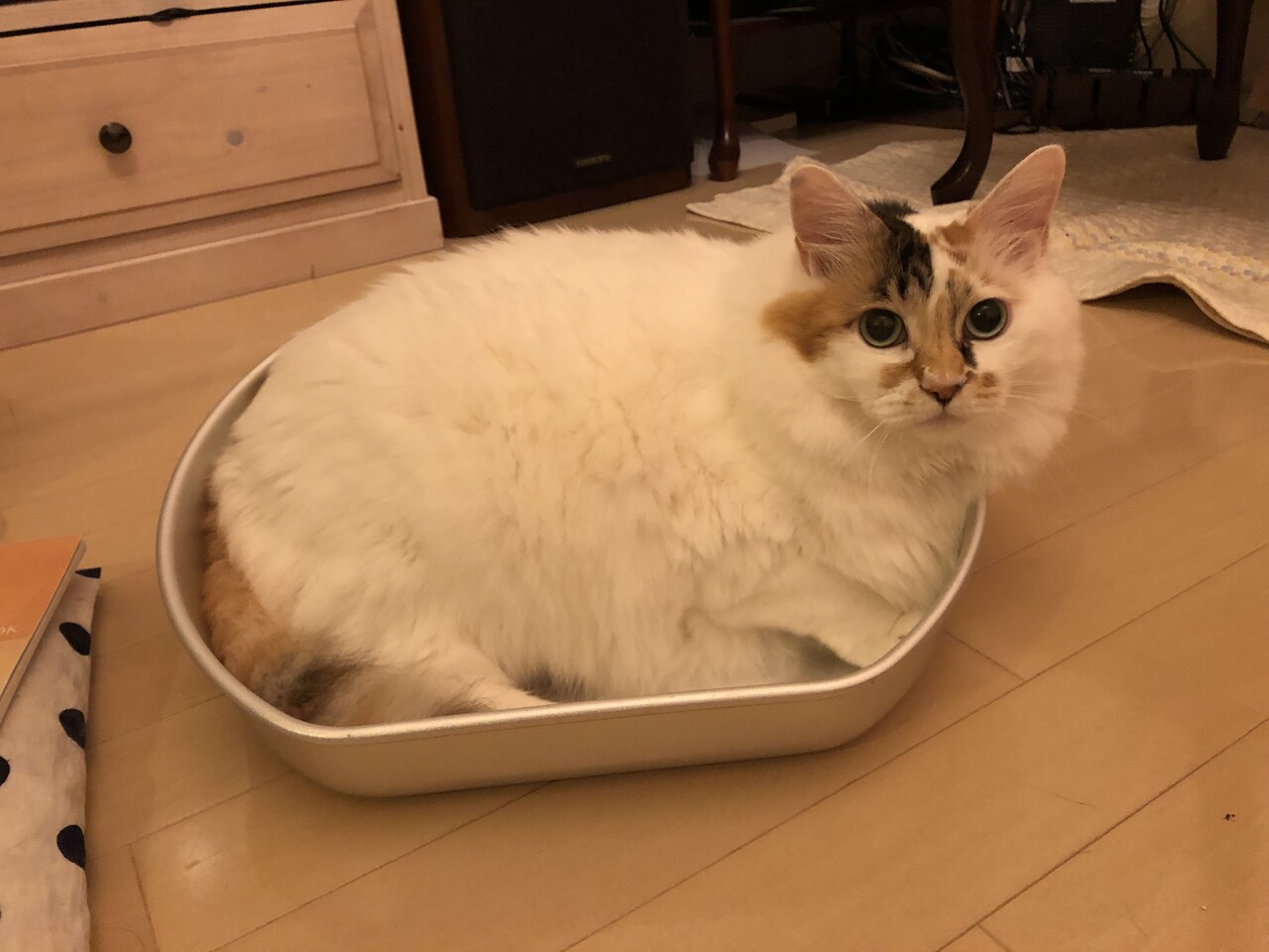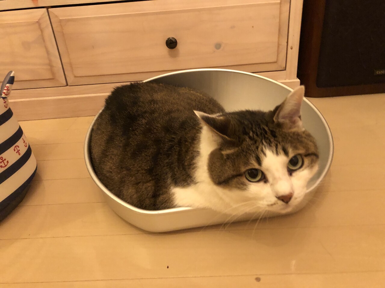 猫様に、夏に向かって金属製のひんやりとする猫鍋ご用意いたしました。