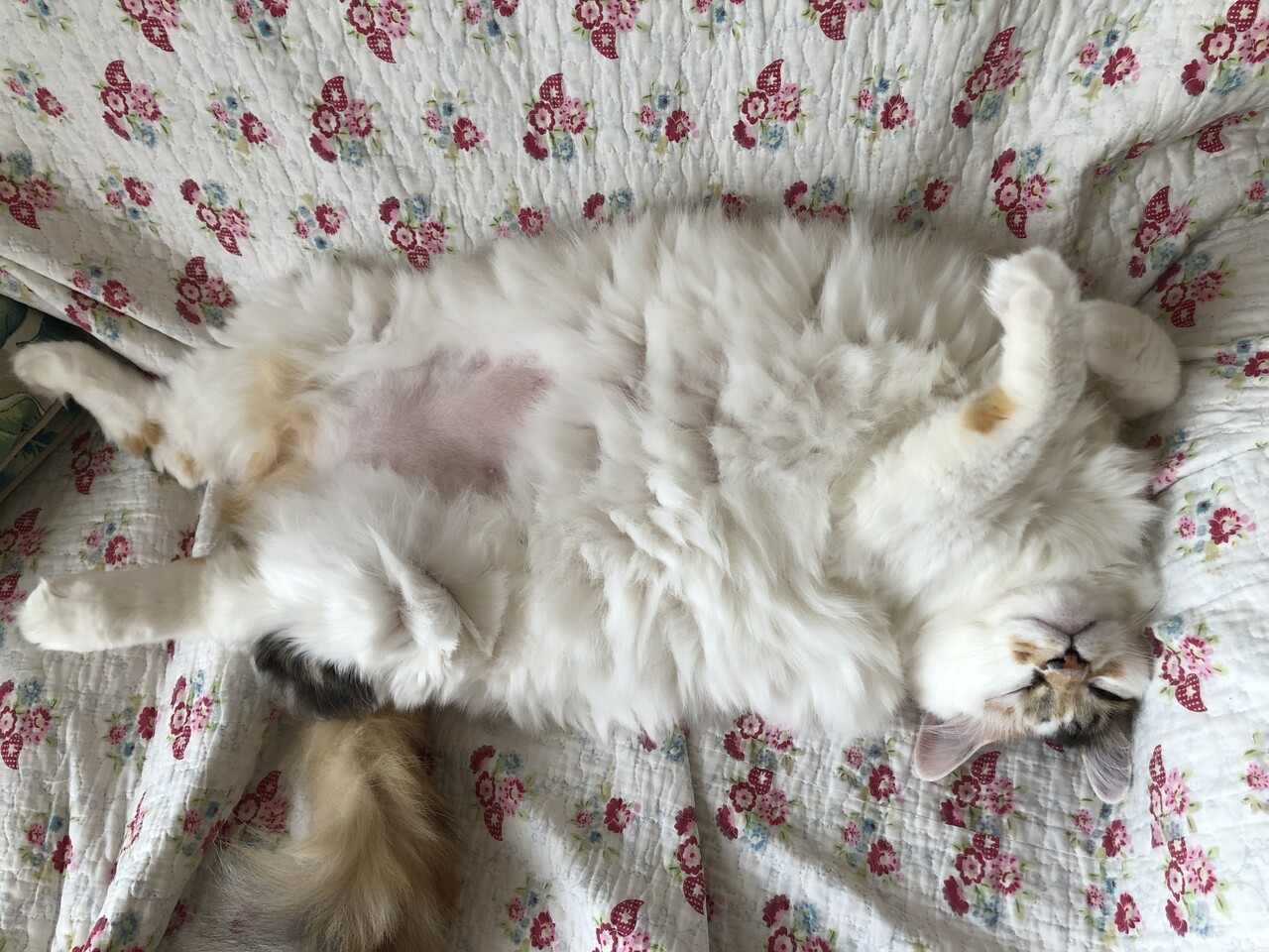 お腹の毛が少し生えてきてオハゲが改善されてきたような気がする。