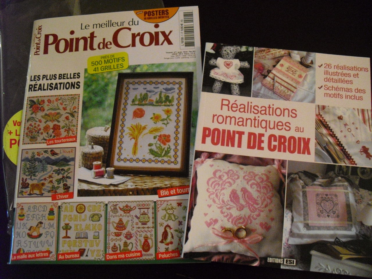 本屋さんで、フランス刺繍の本とクロスステッチの図案。