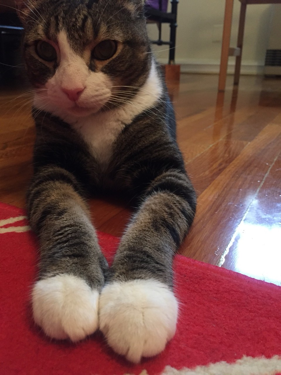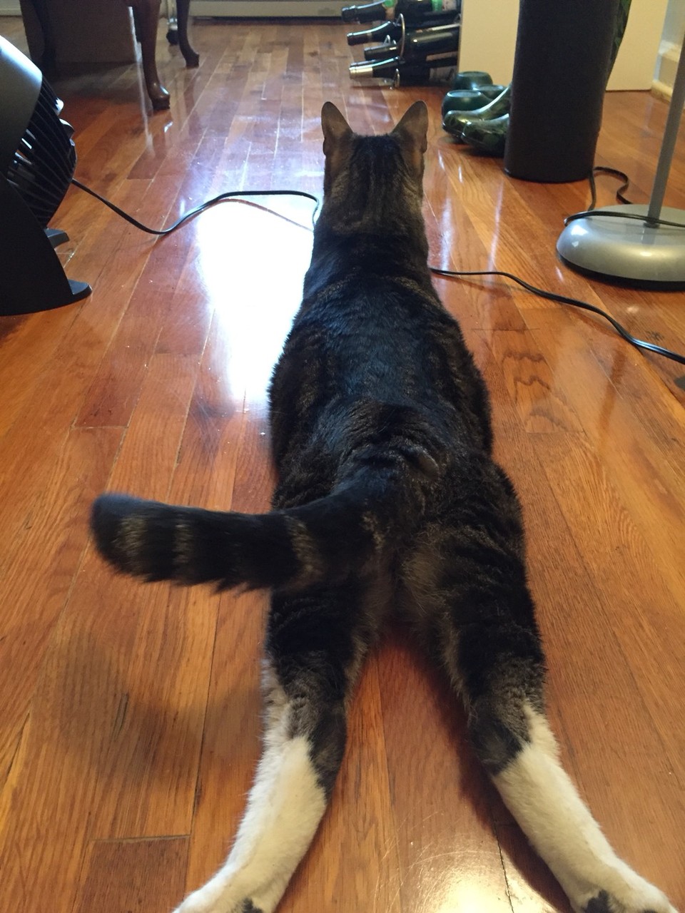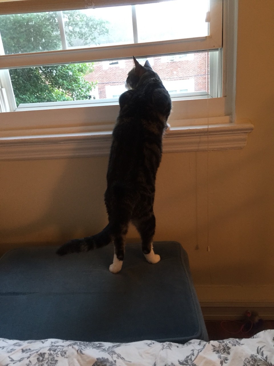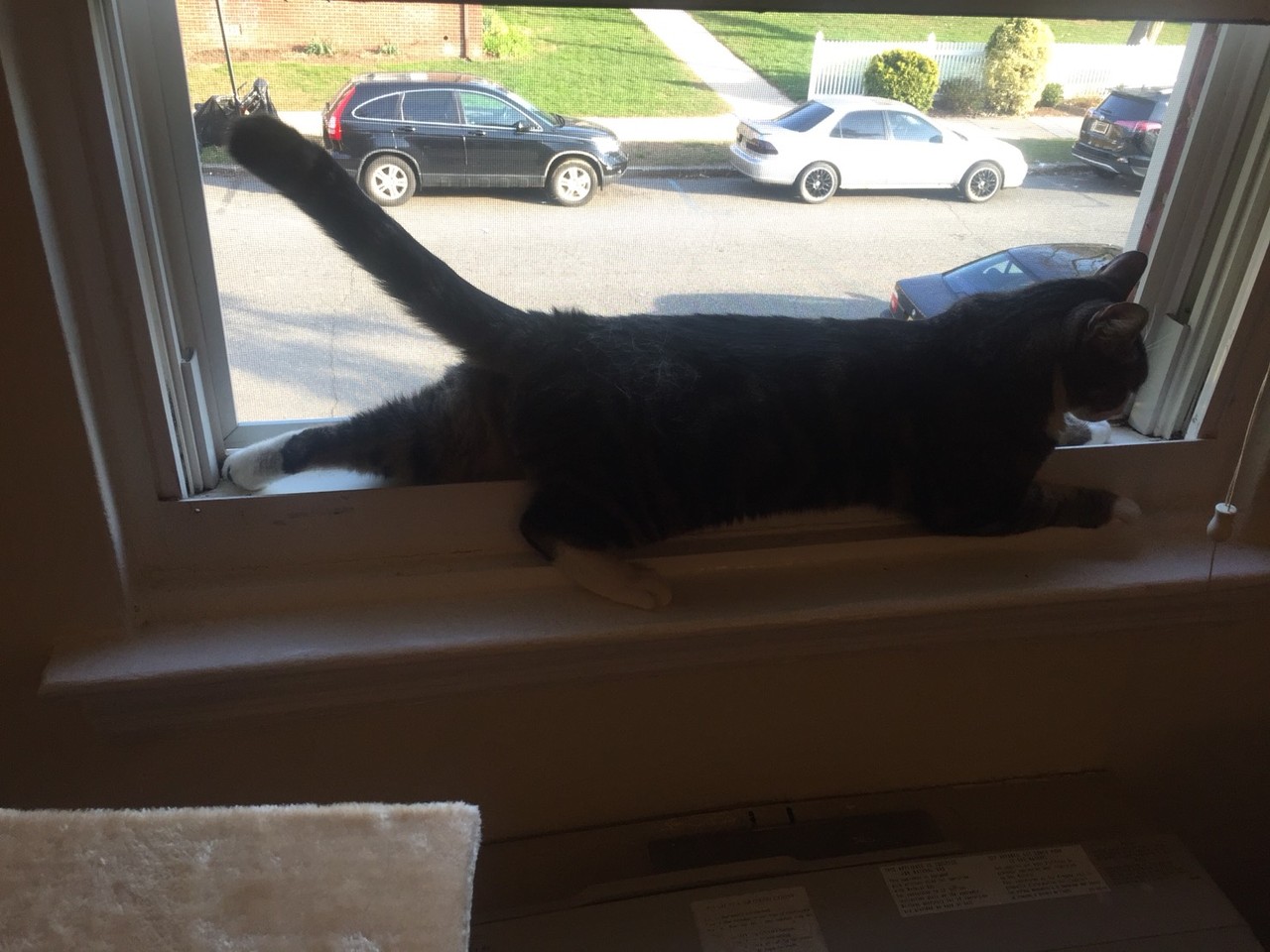 窓の枠にぴったりと沿って足伸ばしてます。