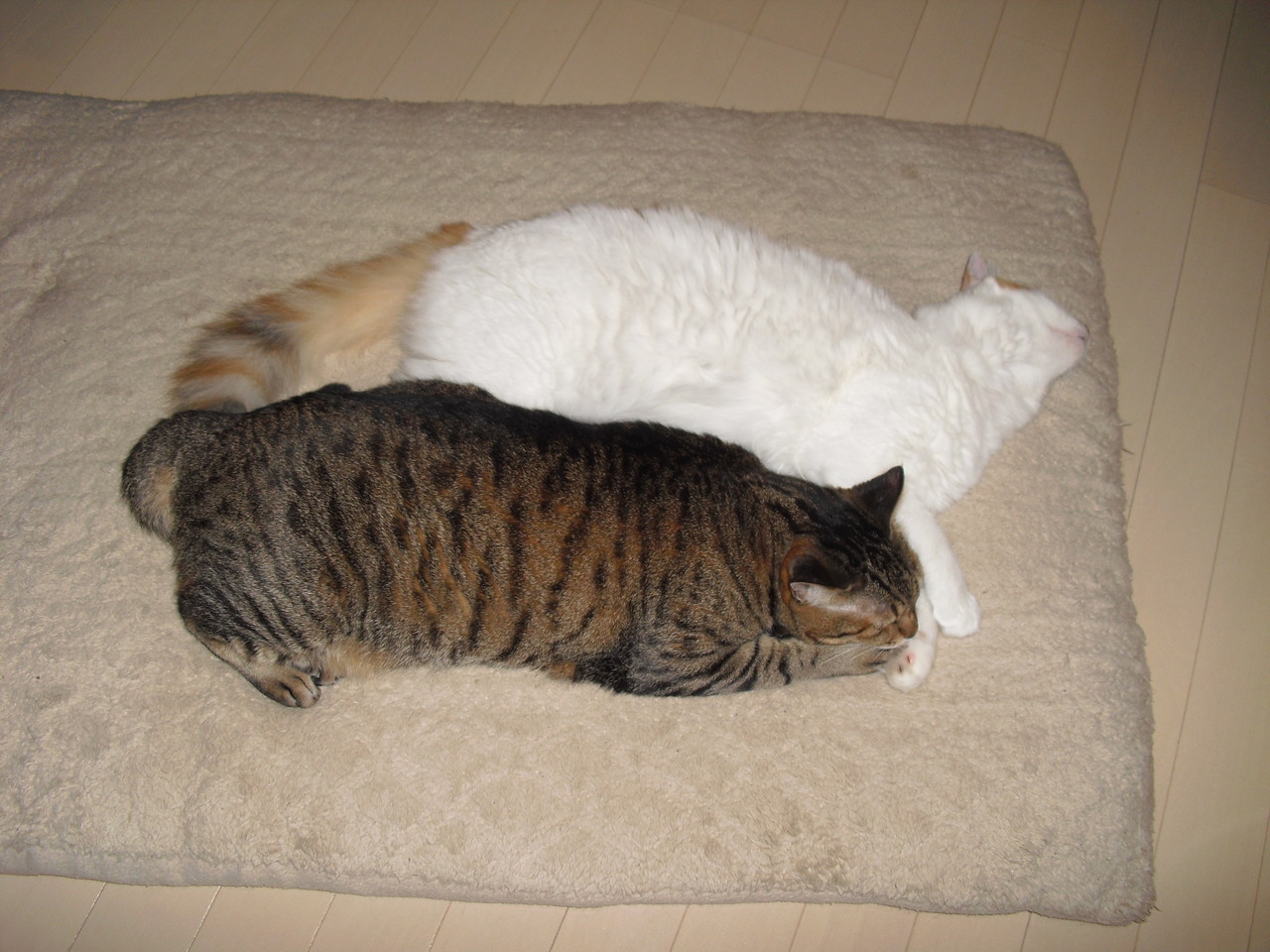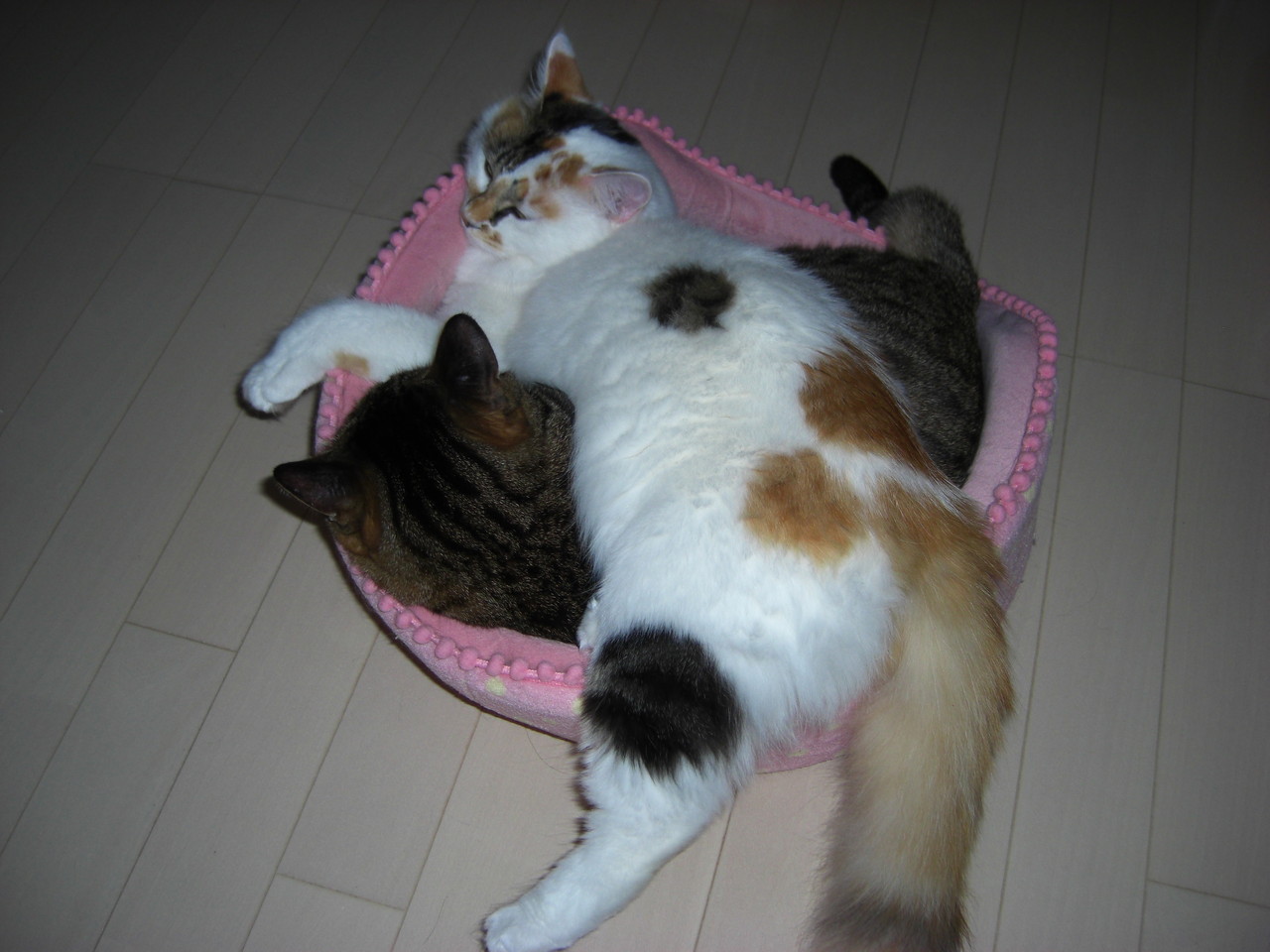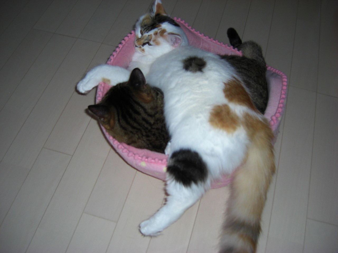 ももこと姫ちゃんの猫団子はよくありますが、この時はブルースも一緒でした。