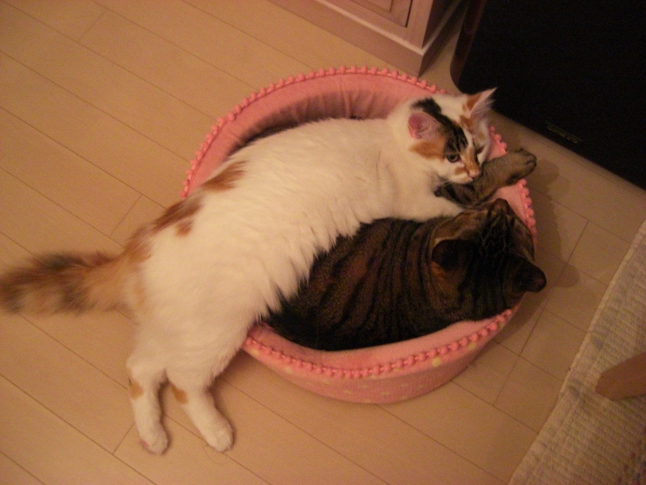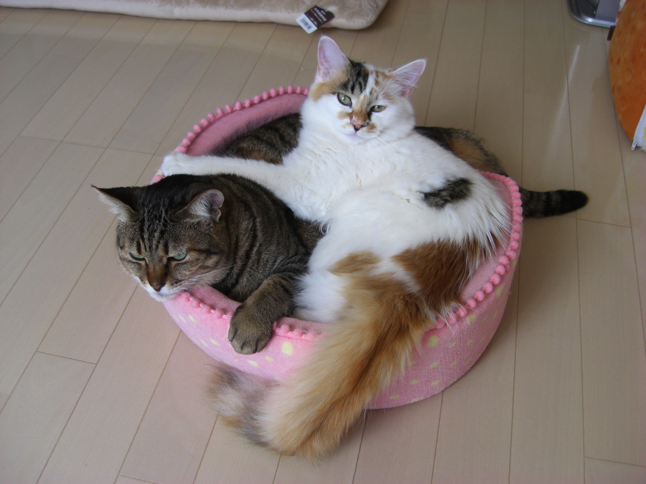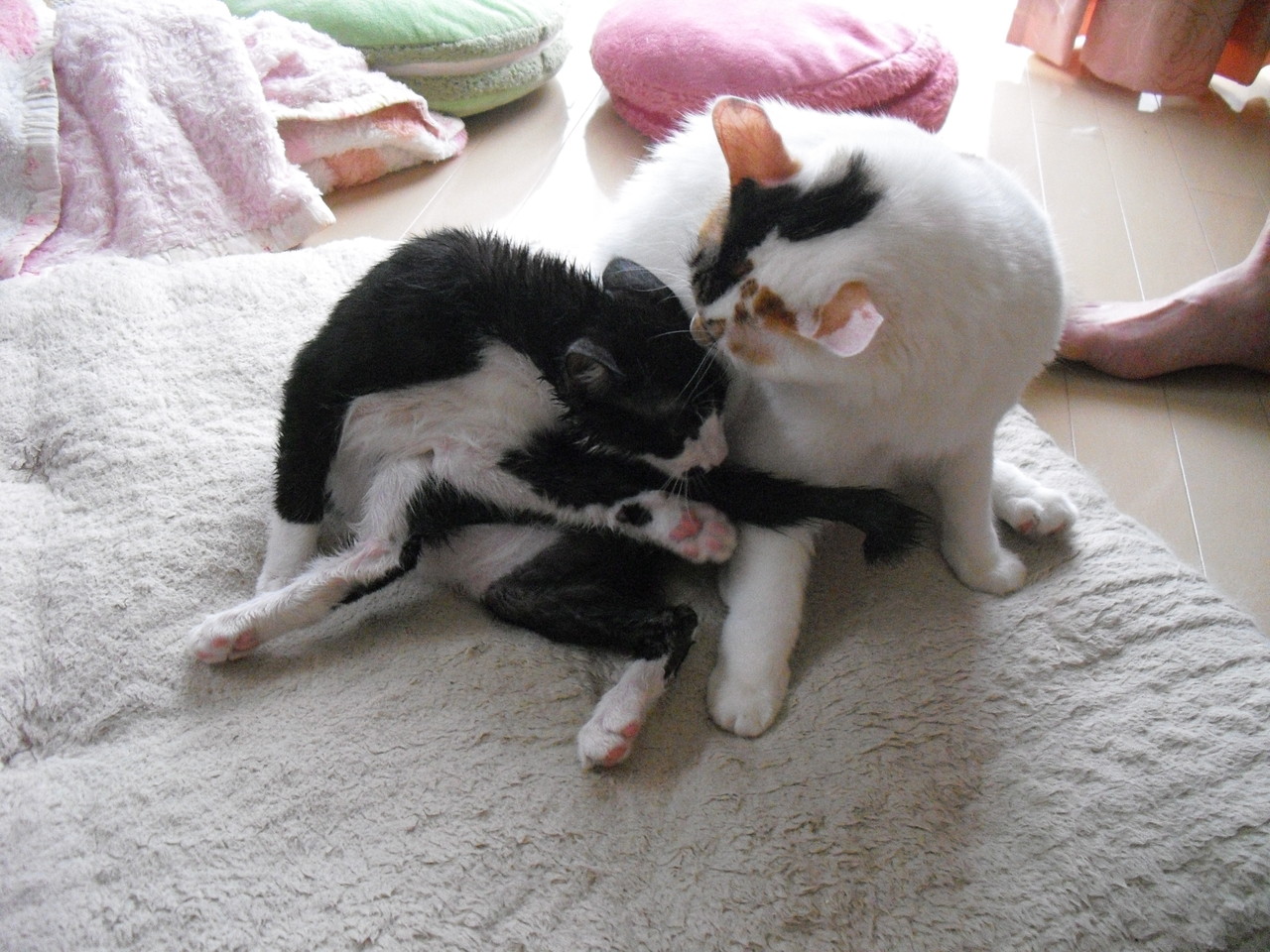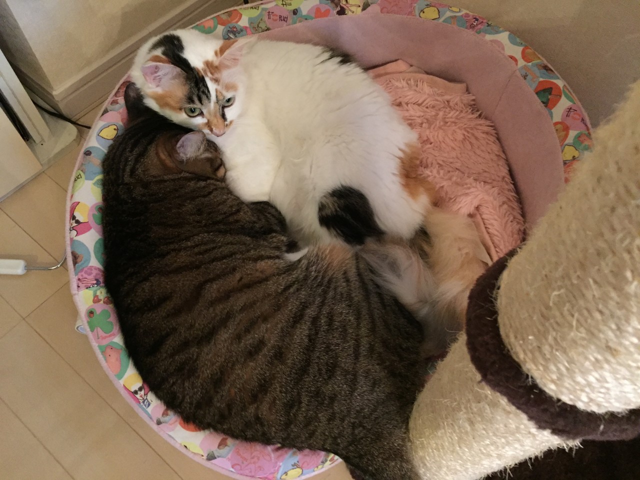 ももこと姫ちゃんの猫団子はよくありますが、この時はブルースも一緒でした。