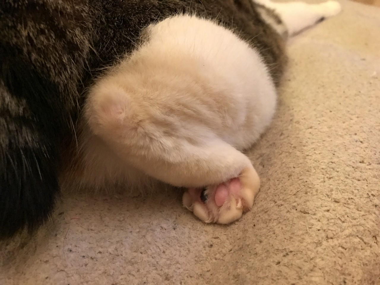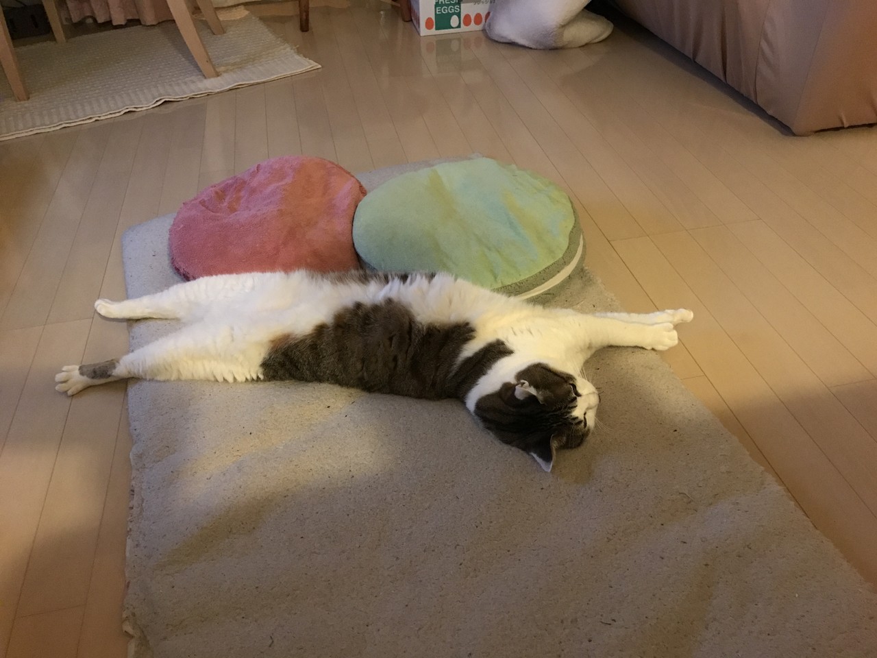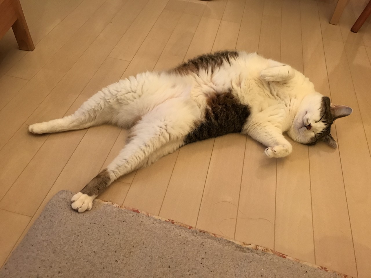 これで熟睡って・・猫さんの柔軟性は素晴らしい。