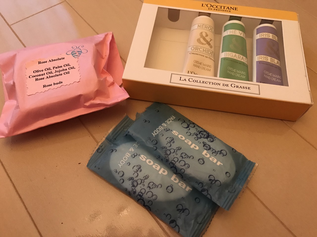 下のソープは出張先のアメニティーグッズらしいんですが、