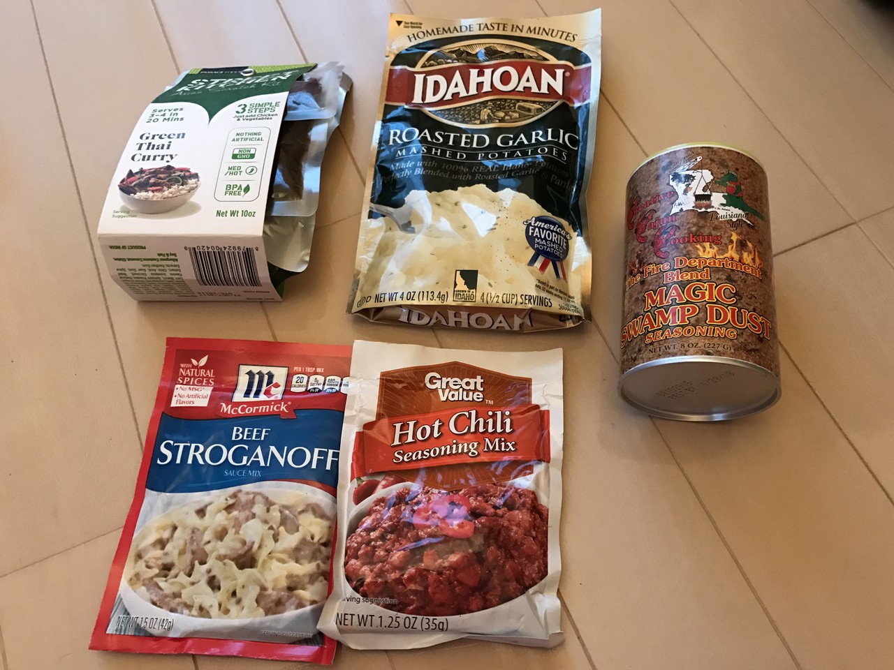 左のは、タイカレーの素、右の筒のような物はケイジャン料理のスパイスです。