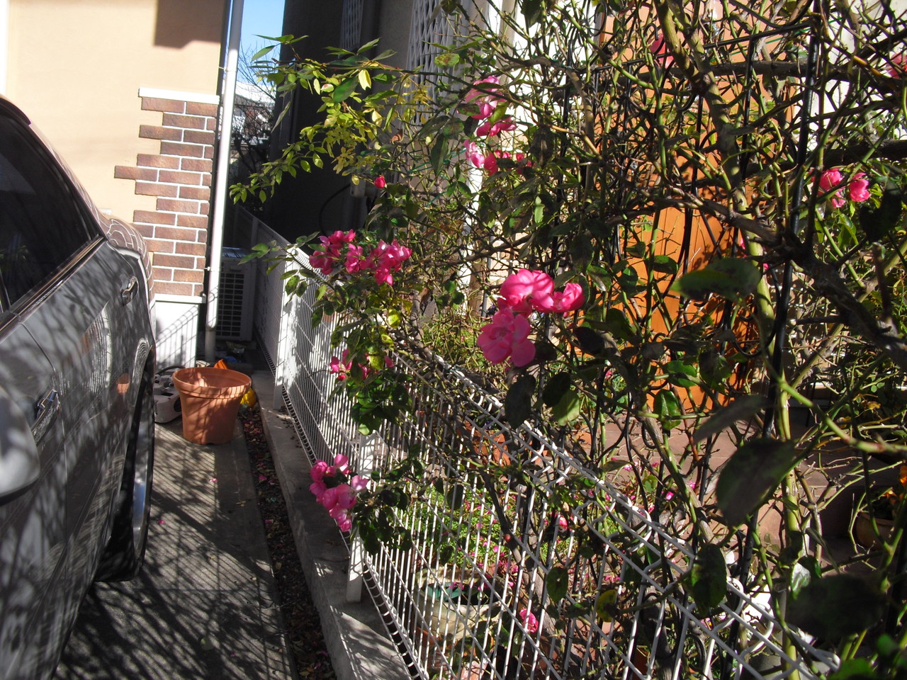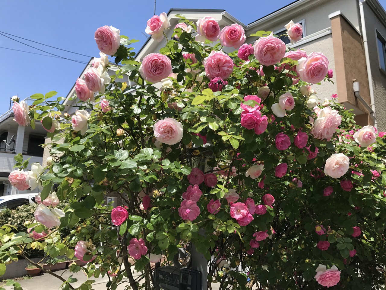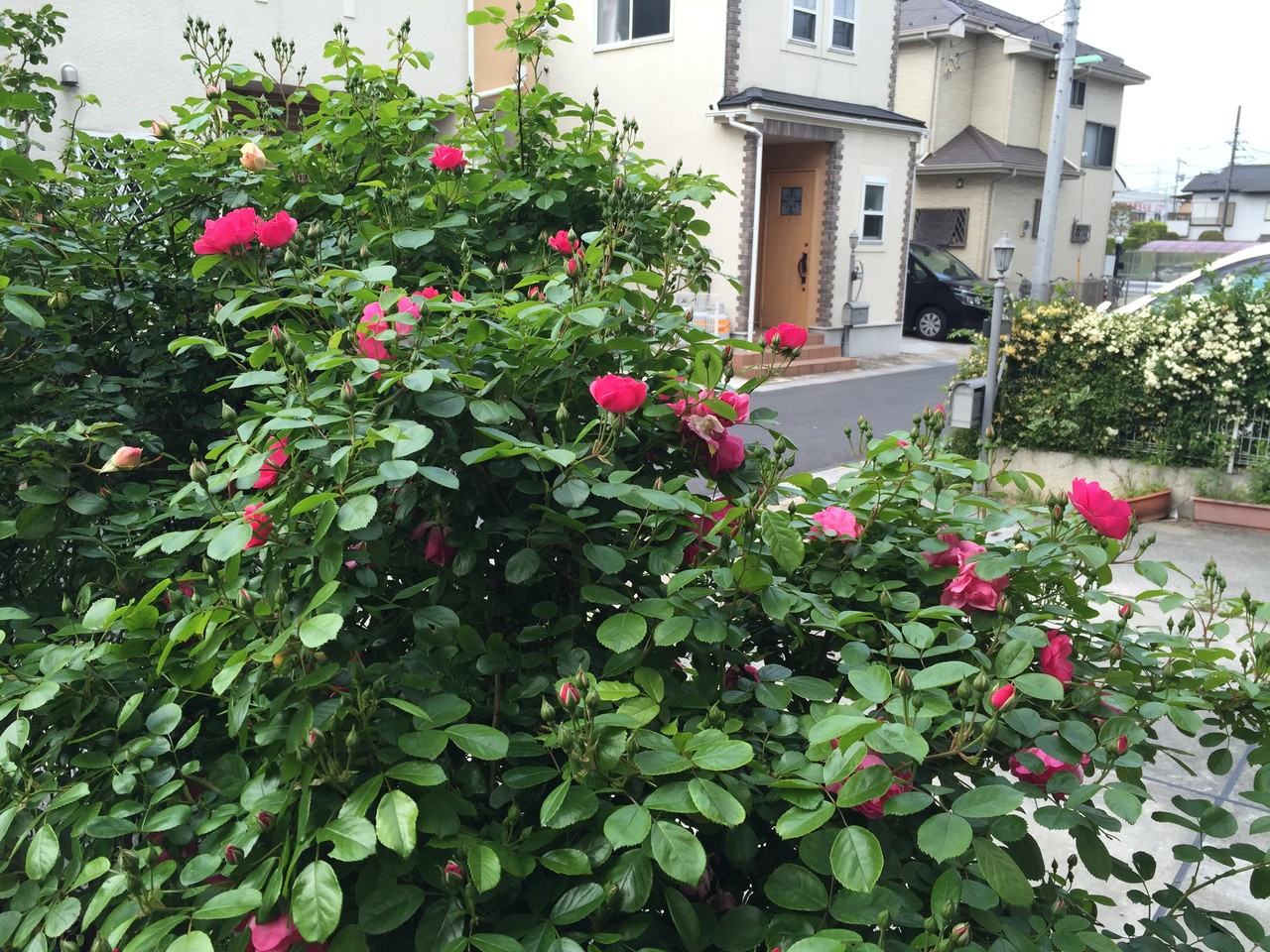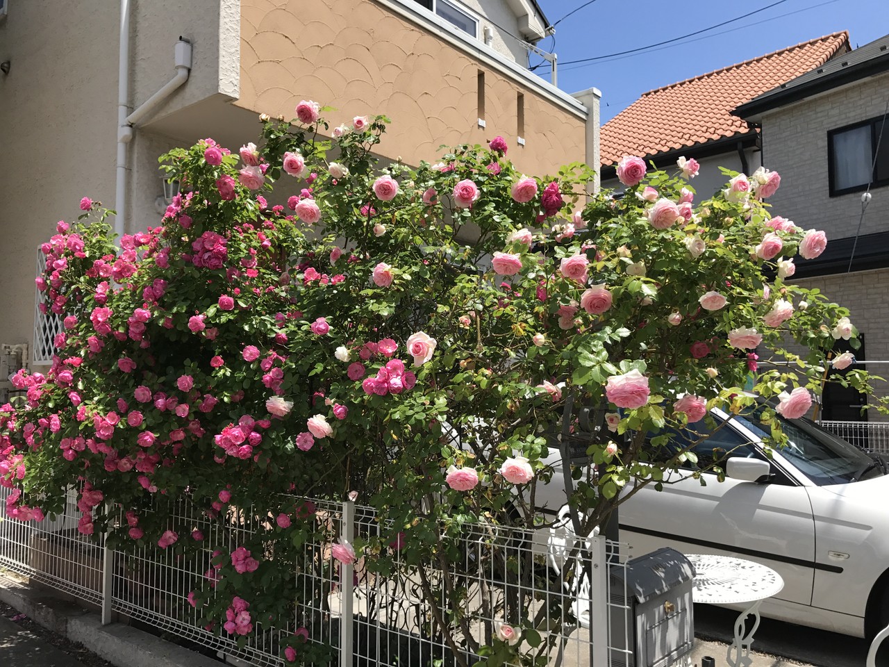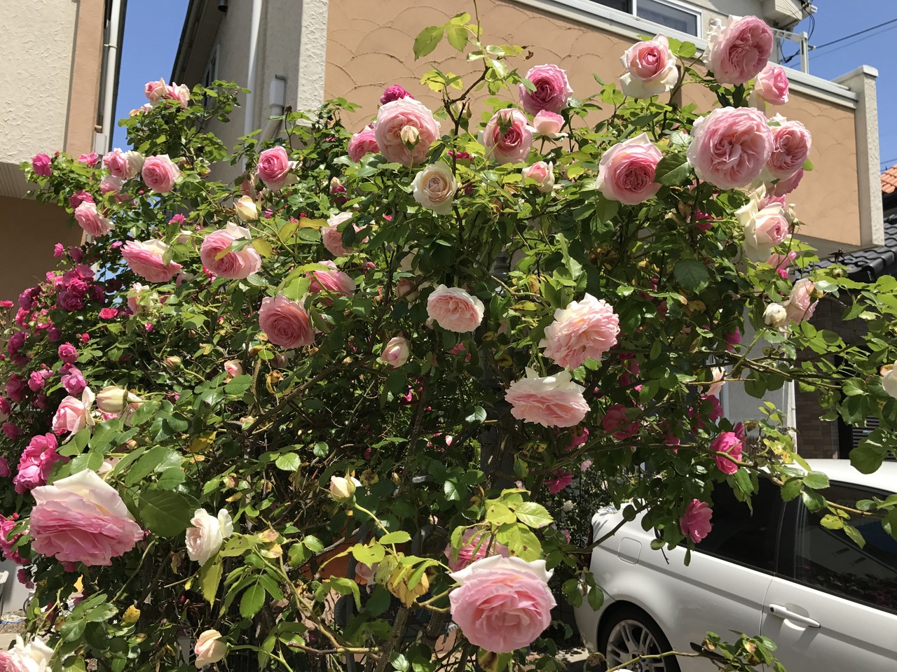 お隣にはみ出して迷惑をかけてしまっているバラです。