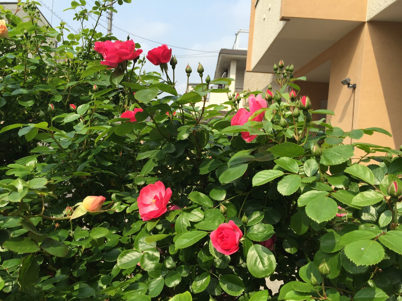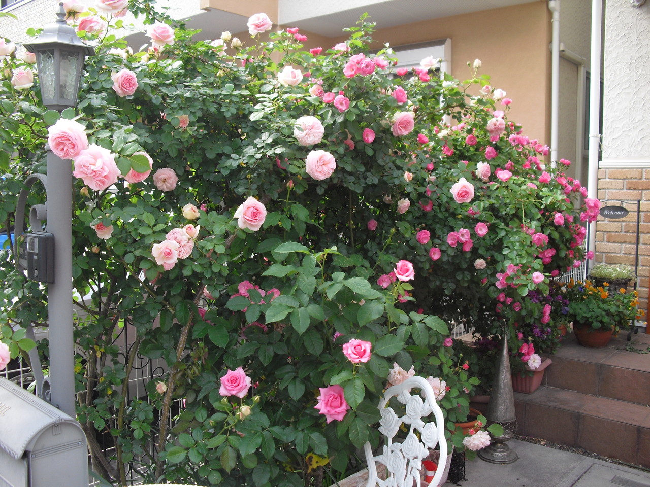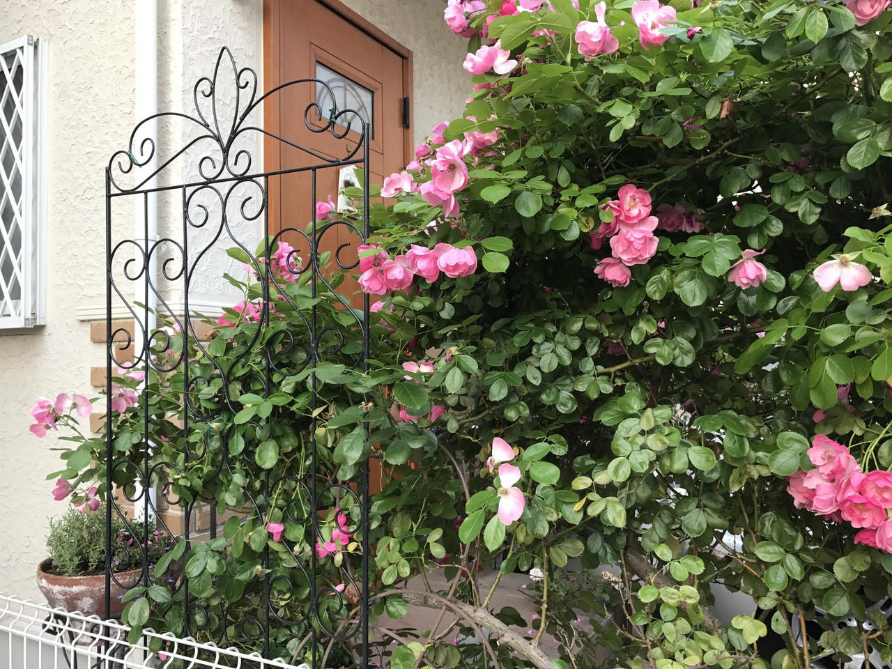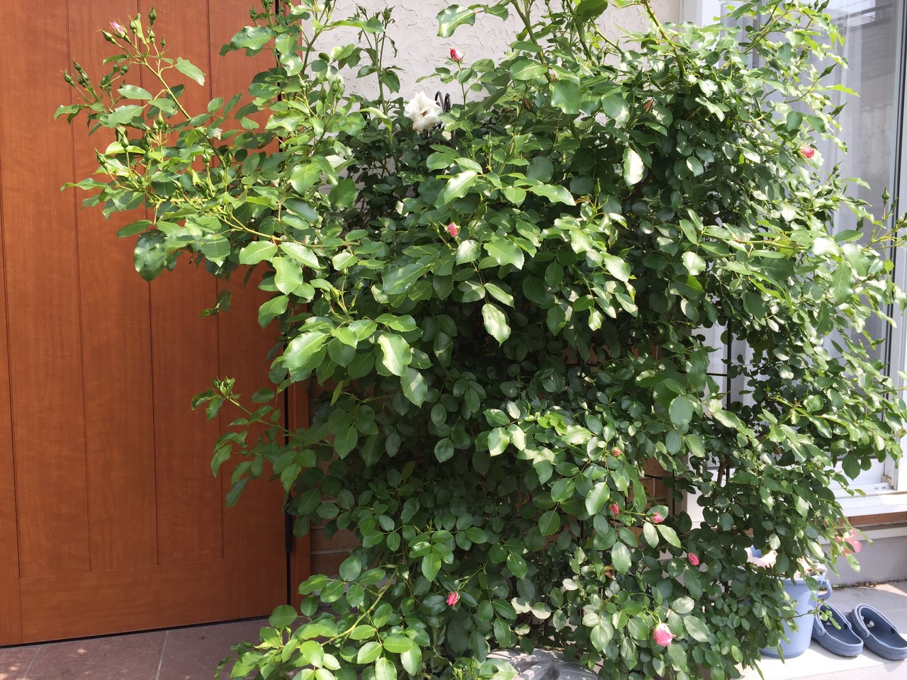 お隣にはみ出して迷惑をかけてしまっているバラです。