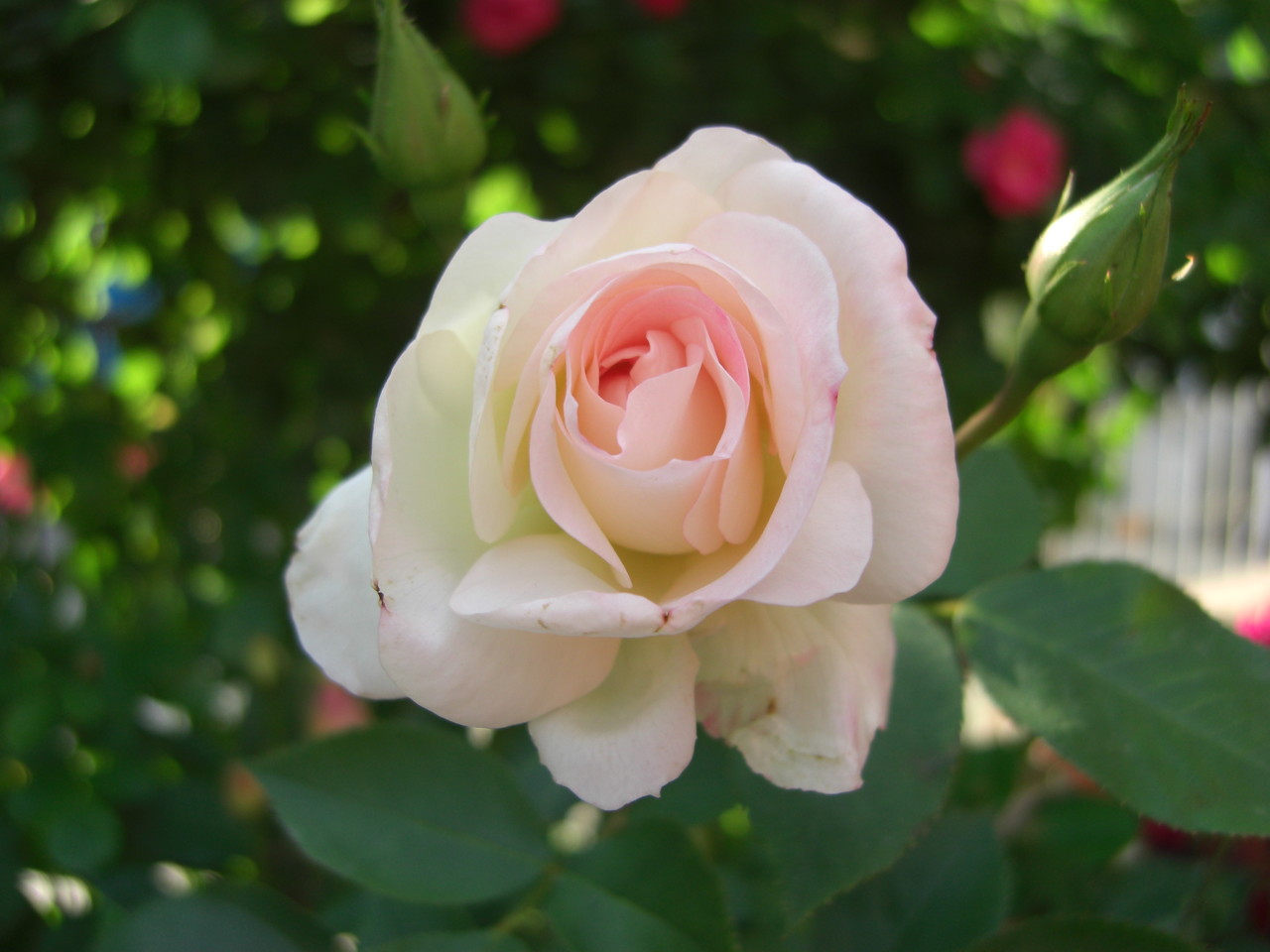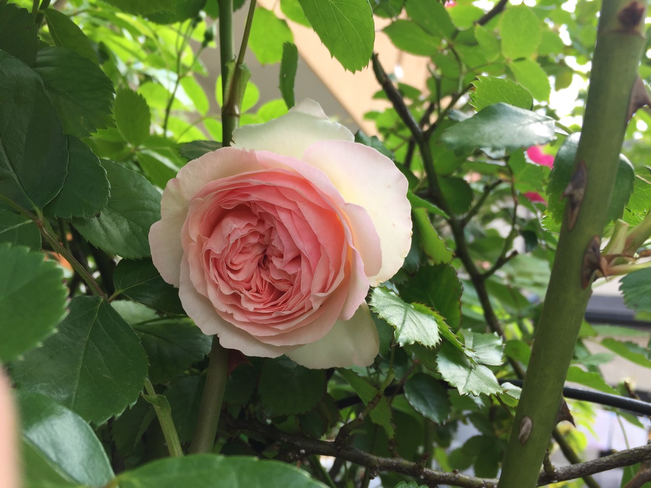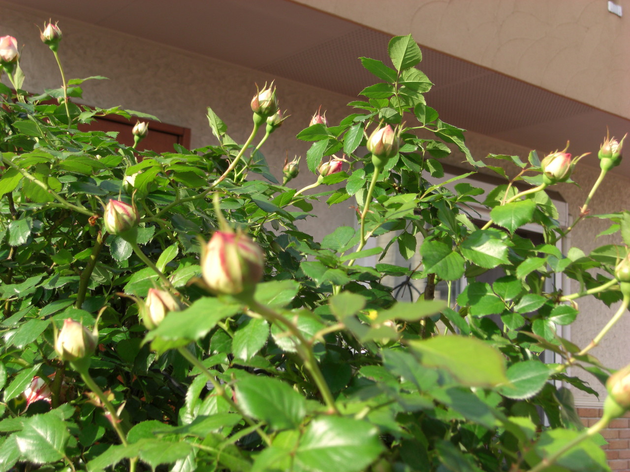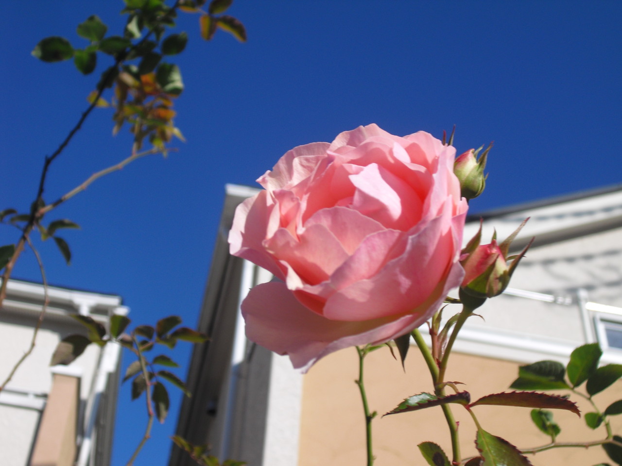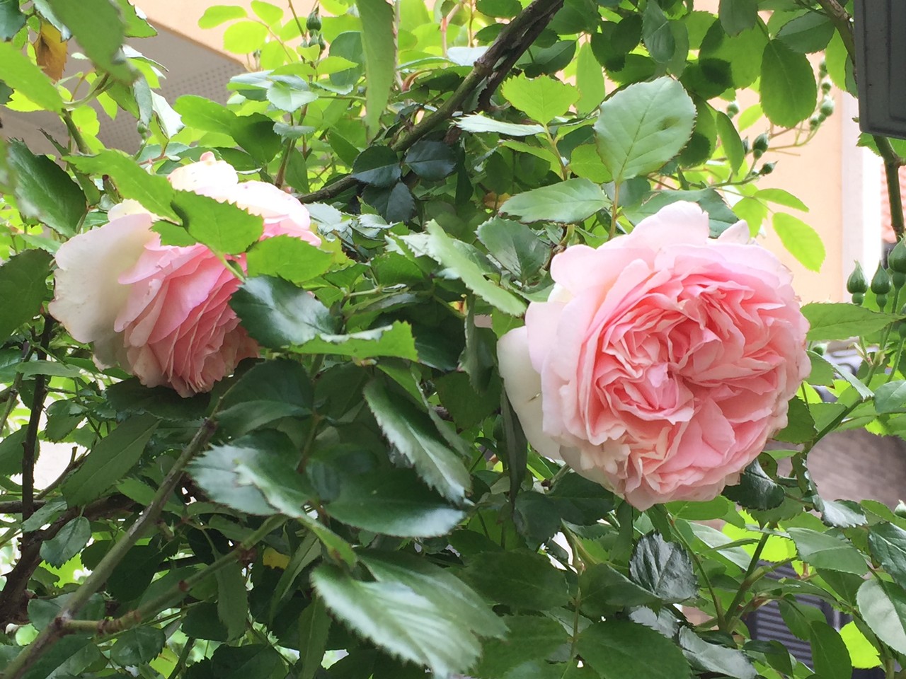 お隣にはみ出して迷惑をかけてしまっているバラです。