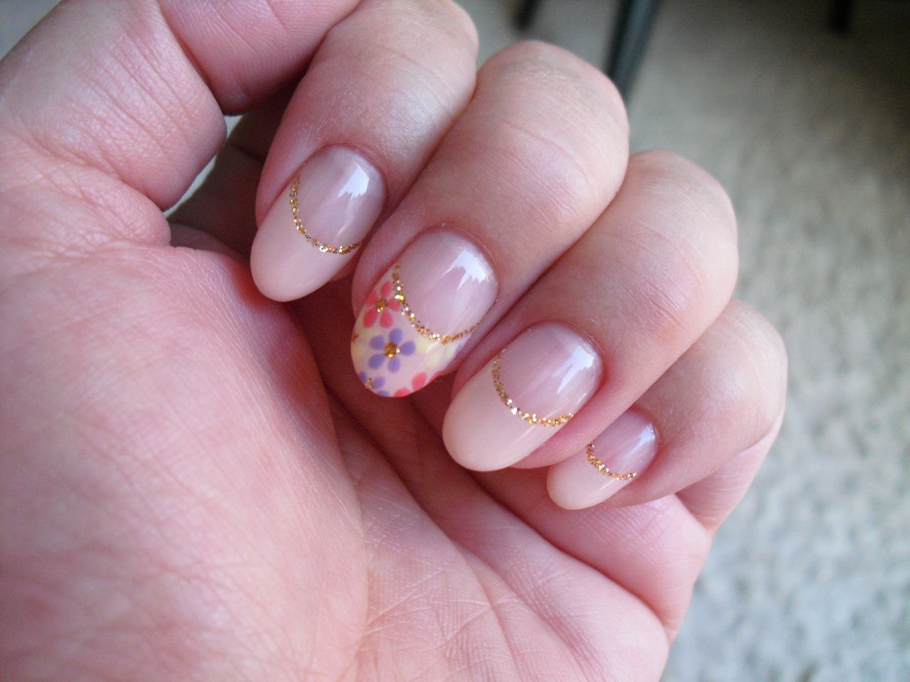 でも久し振りのネイルなのでキャンペーンデザインに左右一指ずつに