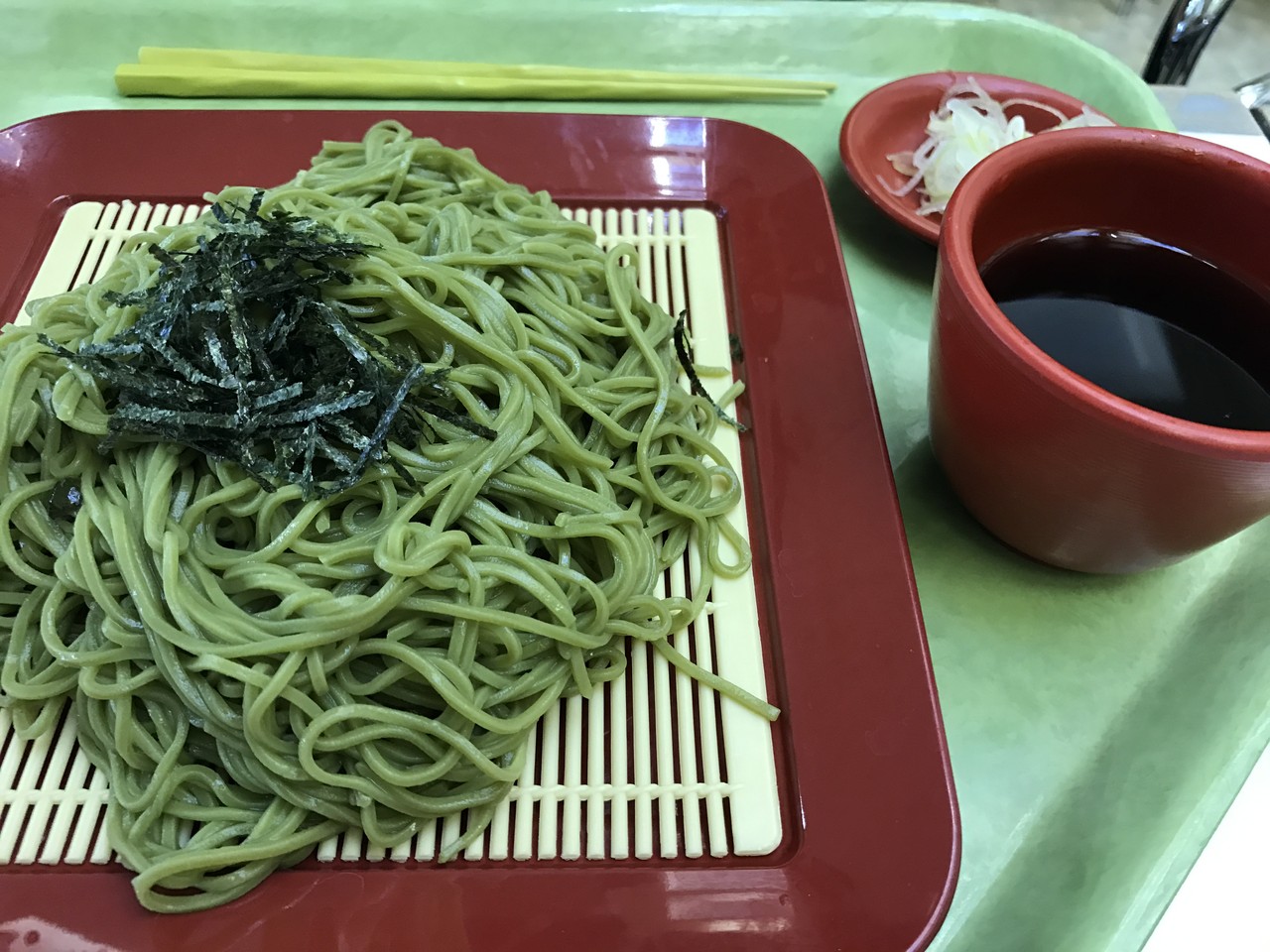 息子が食べた茶蕎麦、大盛り 390円