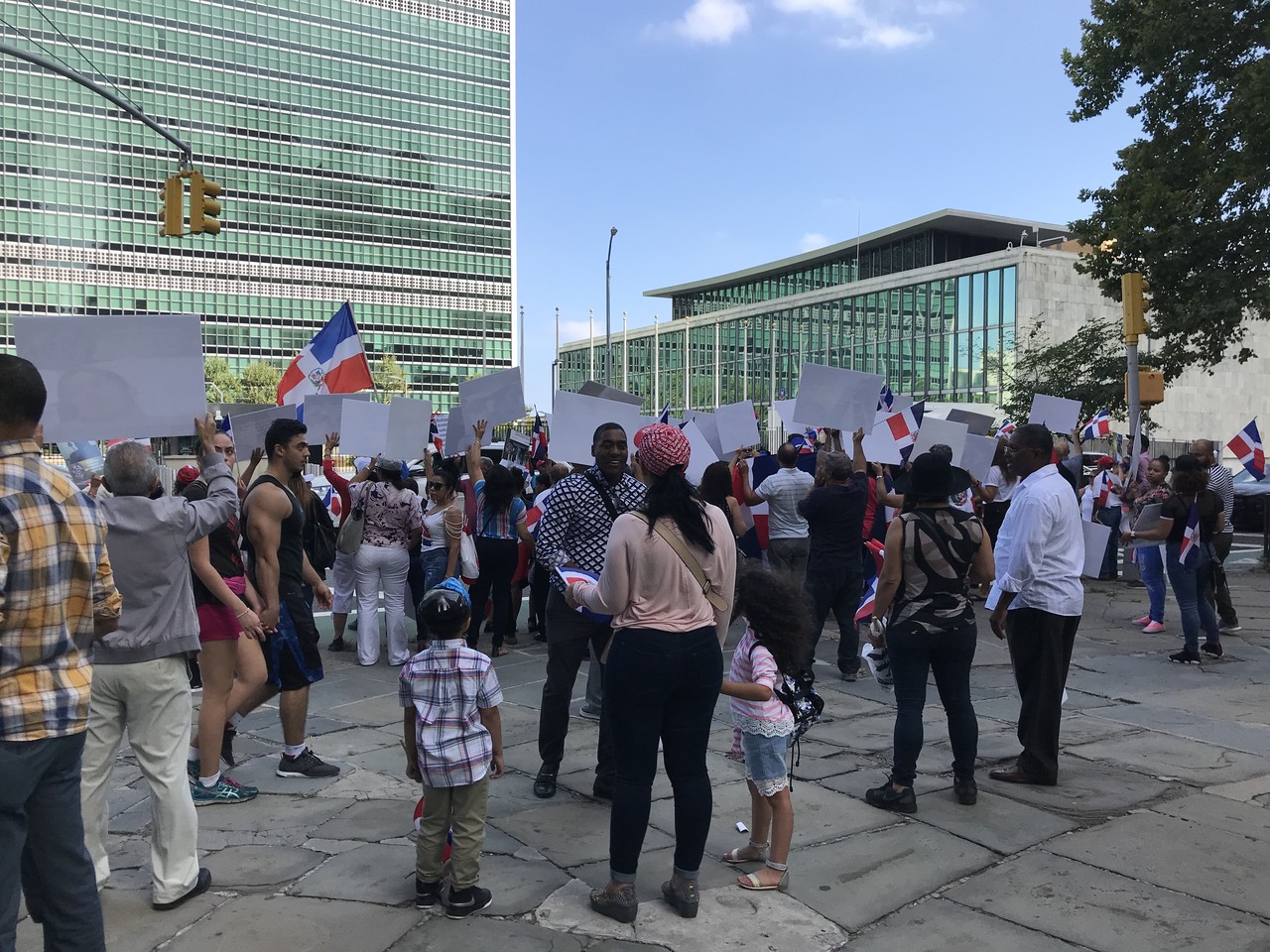 何やらデモが行われていますよ。