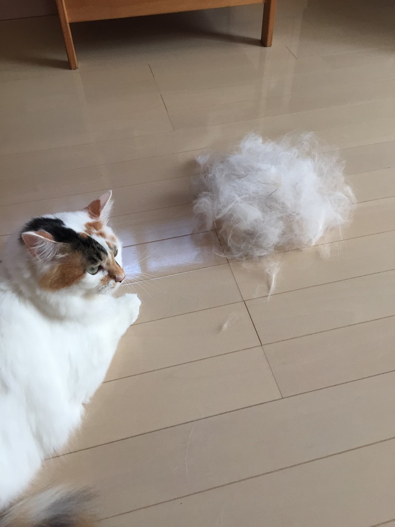 ブラシをかけてもかけても抜け続け、終わりがないです