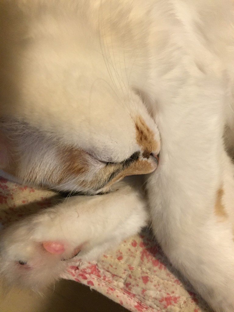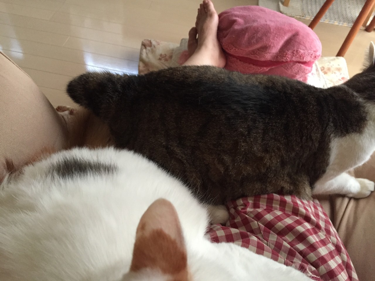 寝相悪いからね、猫さんがつぶされちゃうからちょうど良いわ。