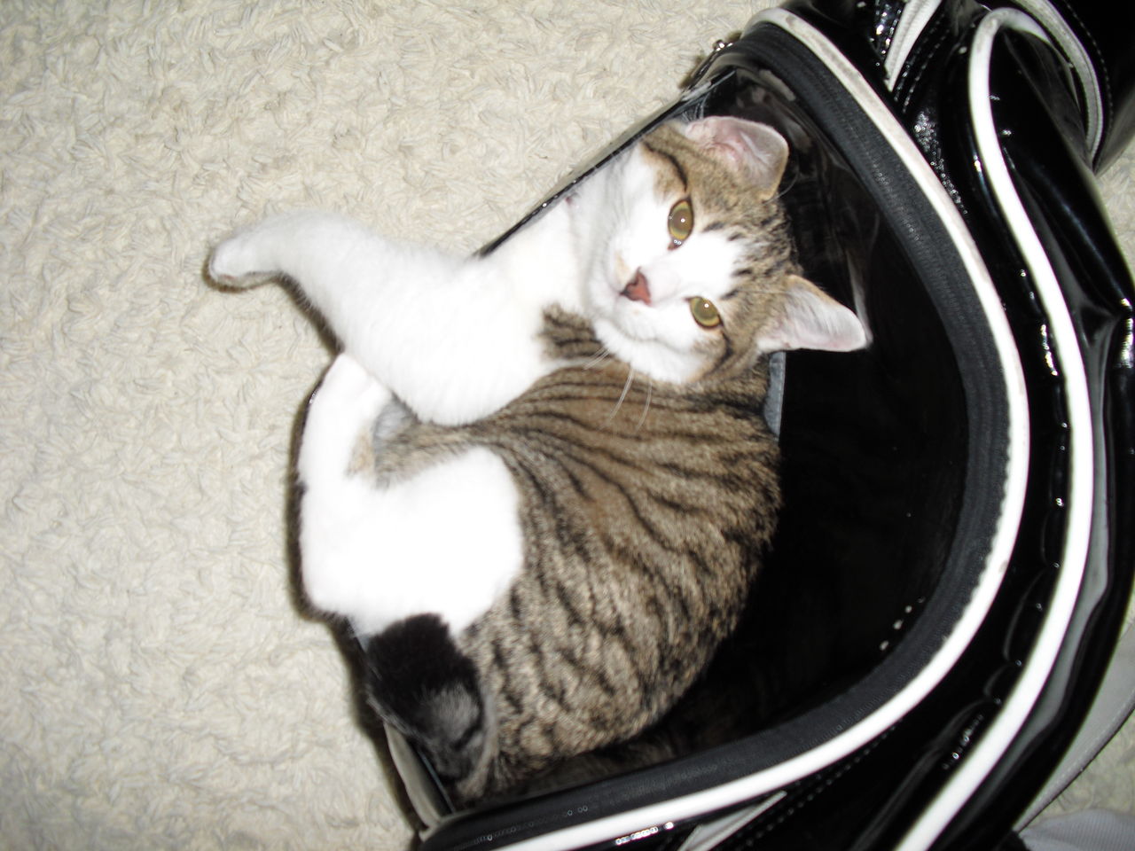 夫が買って来た靴を出したらすかさず入り込む姫ちゃん。