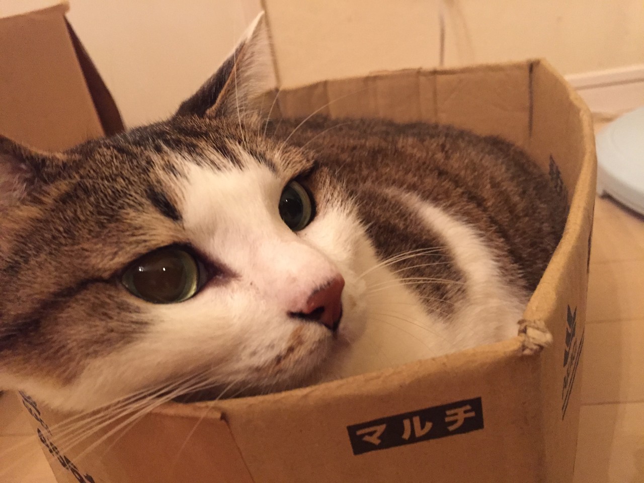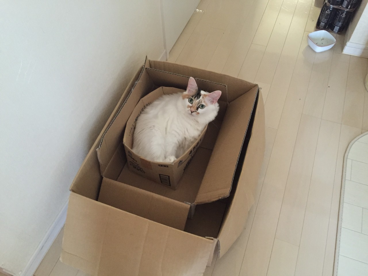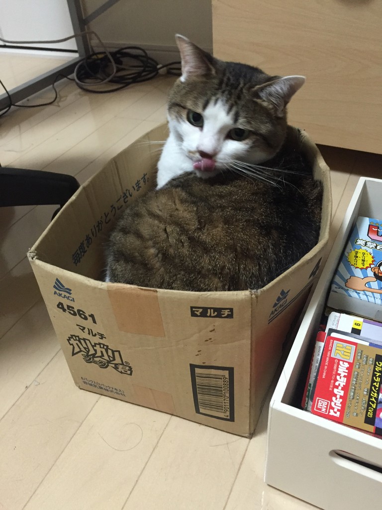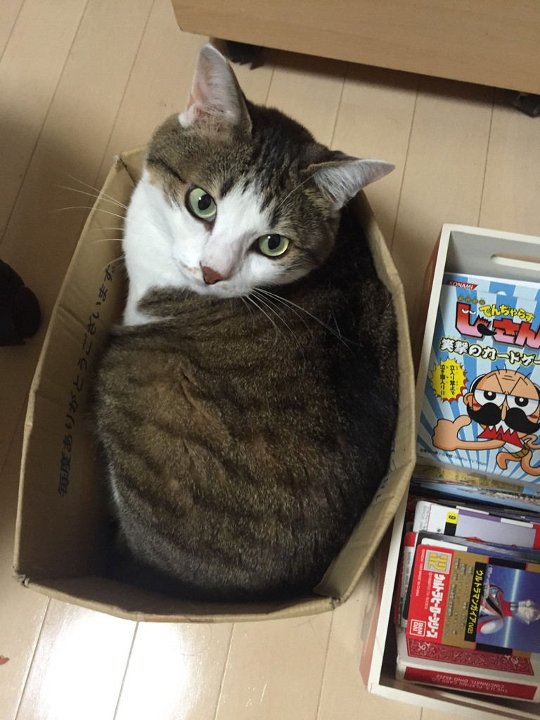 どこの猫さんも一緒だと思いますが、我が家の子も箱が好き。